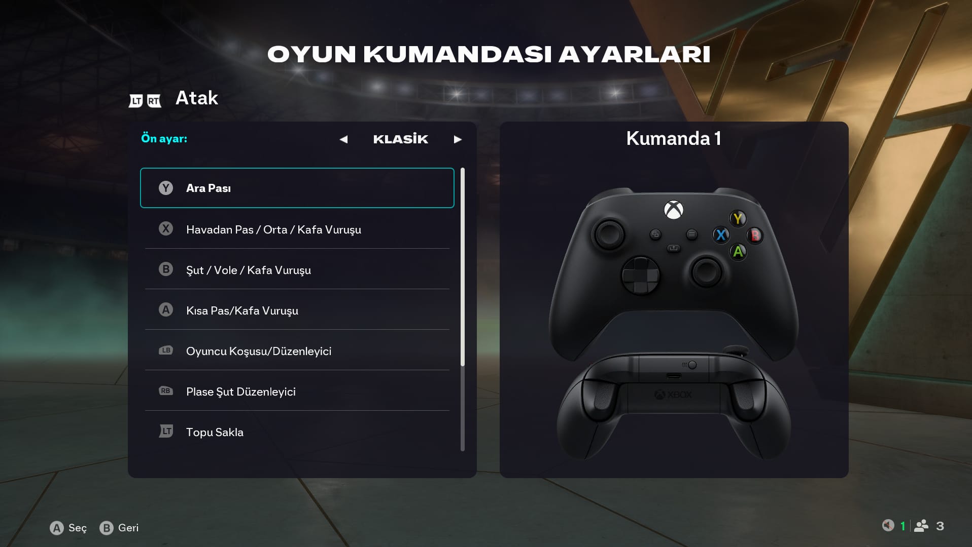 Seçebileceğin dört standart ön ayar vardır ve bunlara "Kontrolleri Özelleştir" sekmesinden erişebilirsin. Bunlar Klasik, Alternatif, İki Düğme ve Tek Düğme seçeneklerdir.
