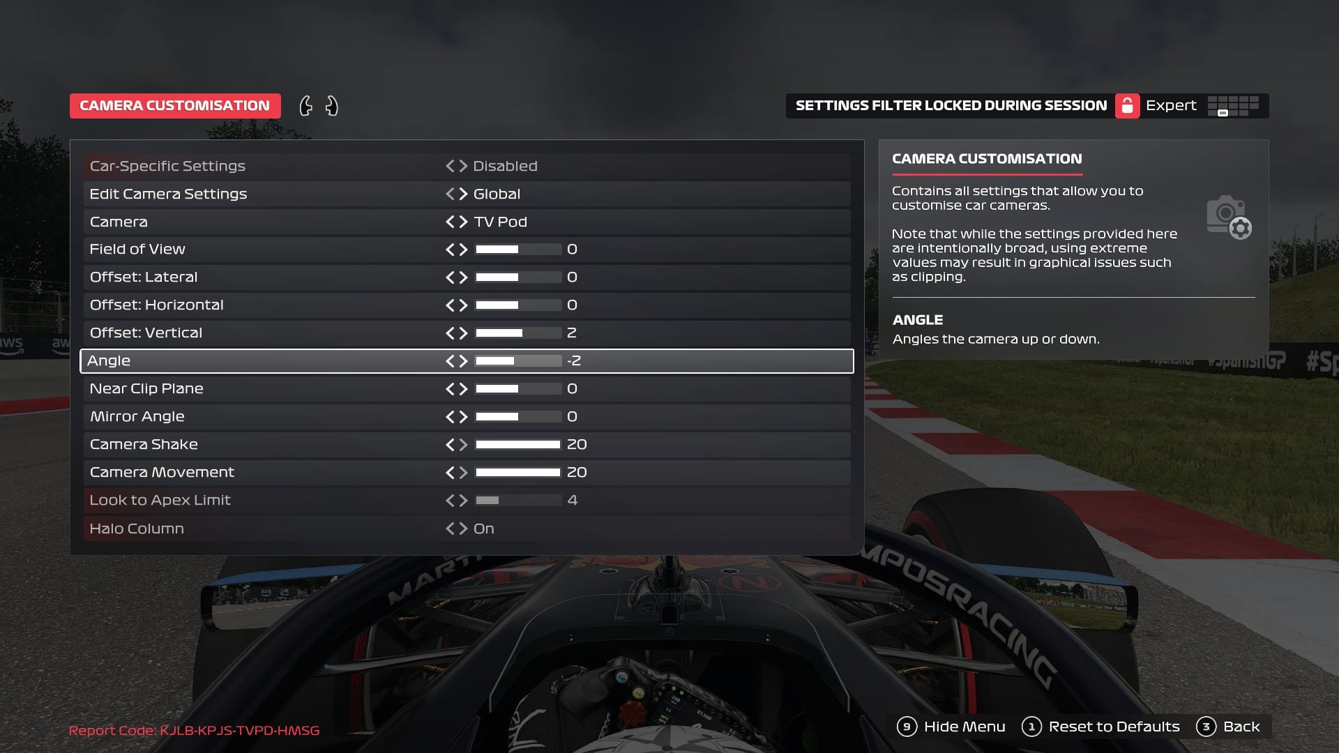 Burada tercih ettiğin kamera perspektifine göre, örneğin kamera offset'ini ayarlayabilir, görüş alanını artırabilir veya kamera sarsıntısını ve hareketlerini azaltabilir ya da tamamen devre dışı bırakabilirsin. Daha geniş bir görüş alanı, görüntüyü yatayda uzatarak hem aracını hem de pistin daha fazlasını görmeni sağlar.
