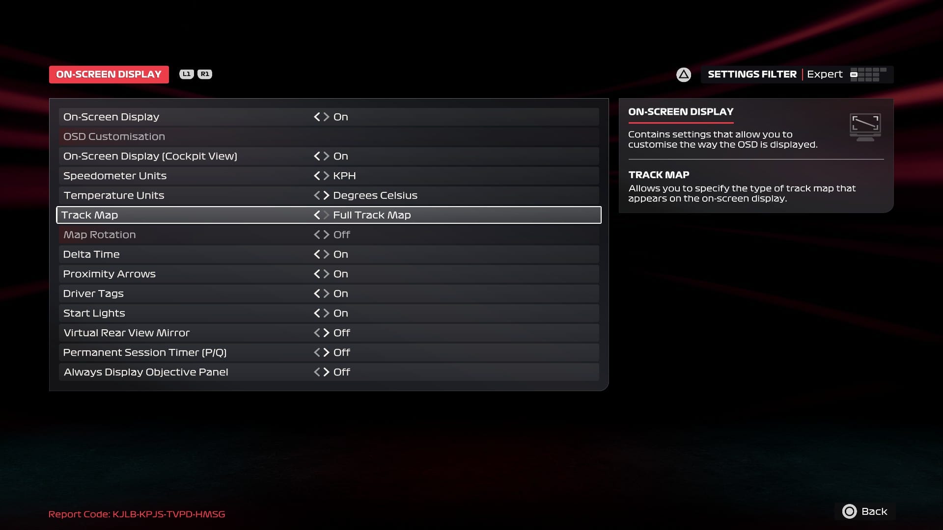 Settings menüsünde yer alan On-Screen Display bölümü de F1 25'te daha iyi olabilmek için oldukça faydalıdır. Burada tam pist haritasını mutlaka açmalısın; bu sayede pistin genel yapısı ve sektörler hakkında daha iyi bir fikir sahibi olabilirsin.