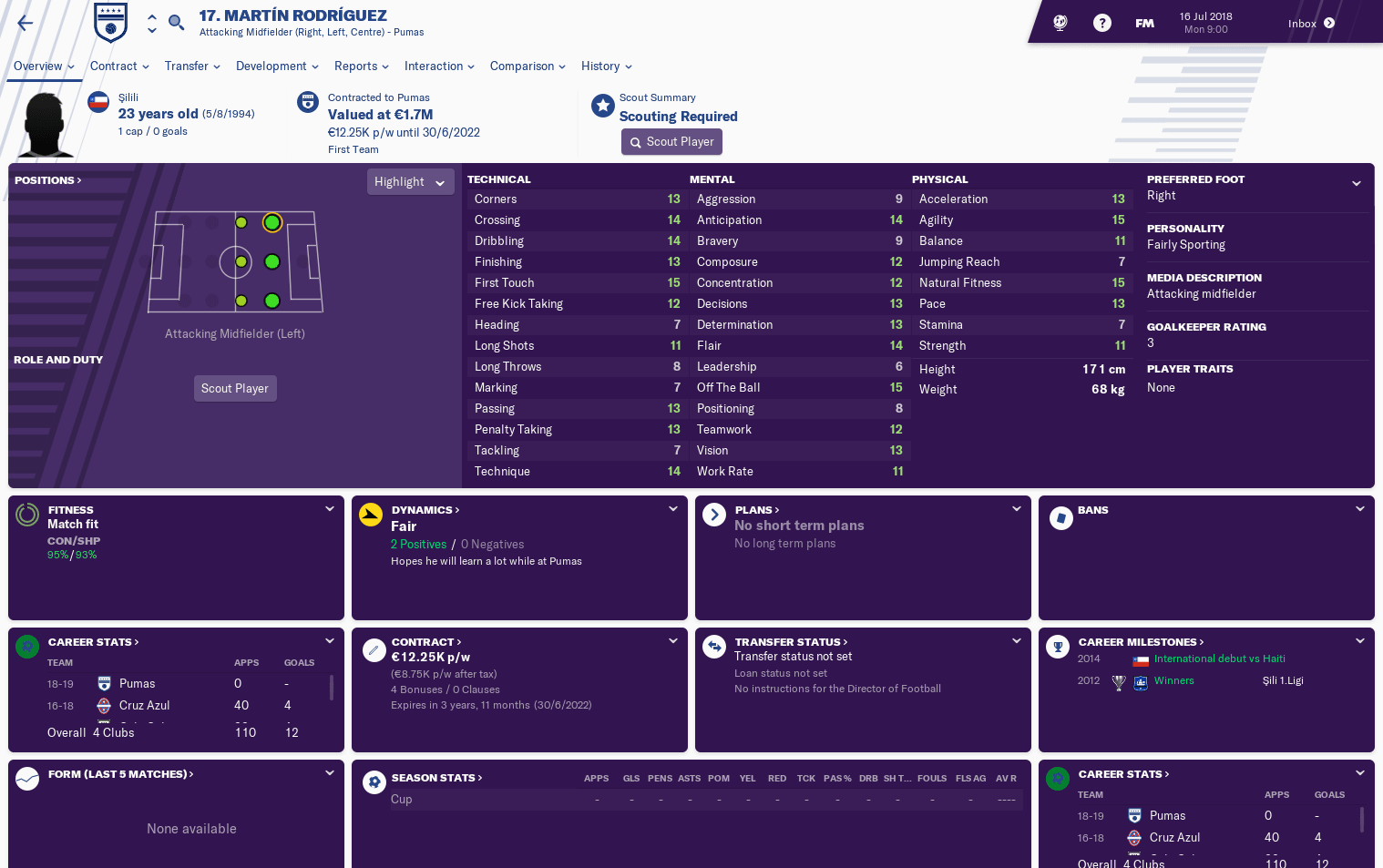 FM’nin eski serilerinde wonderkid olan Alexis Sanchez’le oynamış nesil bilir ki Şili de kanat oyuncusu açısından bir cennet. Ancak Martin Rodriguez bir Meksika takımı olan Pumas’ta forma giyiyor ve sadece 1.2 milyon Pound karşılığında transfer edilebiliyor. Kesinlikle iyi bir seçenek.