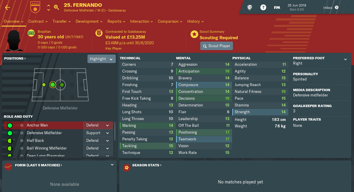 Galatasarayın Brezilyalısı her ne kadar gerçek hayatta formdan düşse de FM 2019 profiliyle parıldıyor. Mental ve fizik özellikleri bir DMC için "yok yok" niteliğinde.