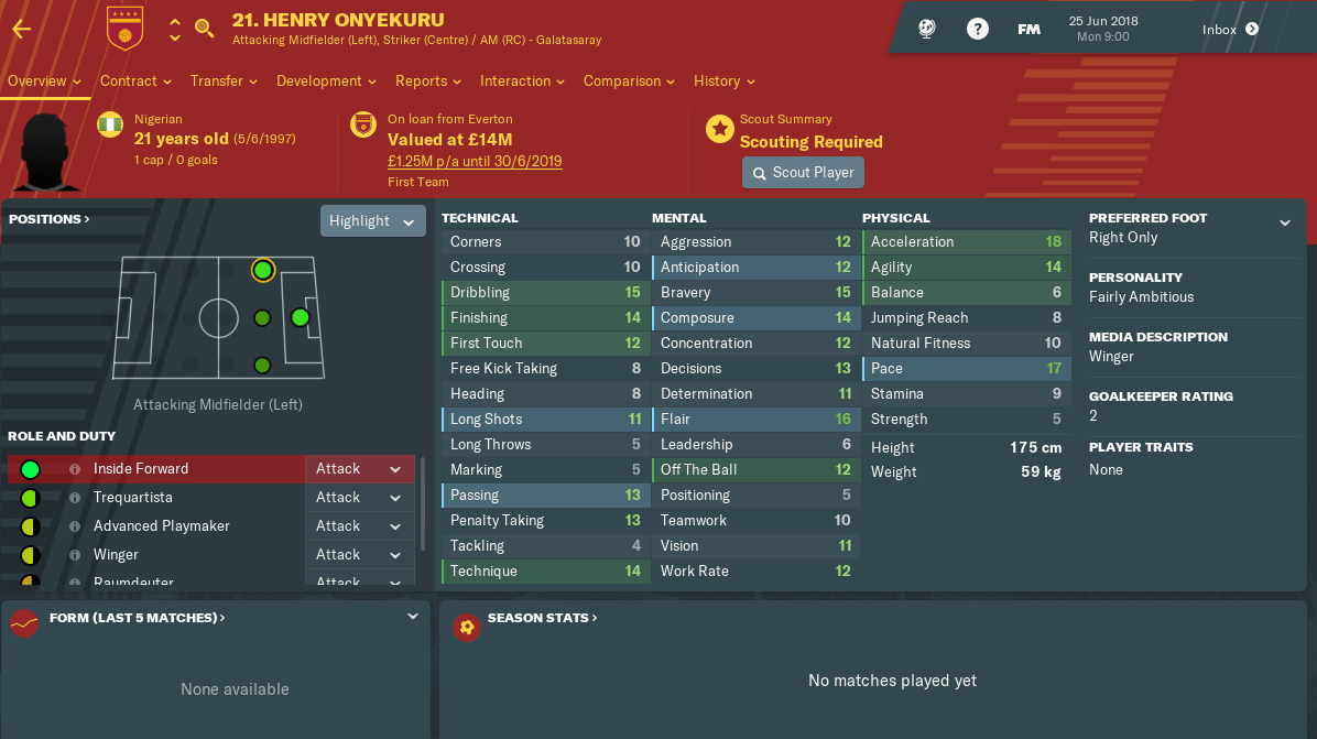 Galatasaray’ın Everton’dan kiraladığı Henry Onyekuru da tıpkı gerçek hayatta olduğu gibi hız özellikleriyle ön plana çıkıyor. Oyuncunun PA’sının yüksek olduğunu düşünürsek, birkaç yıl sonra şahane bir kanat oyuncusuna dönüşeceğine kesin gözüyle bakabiliriz.