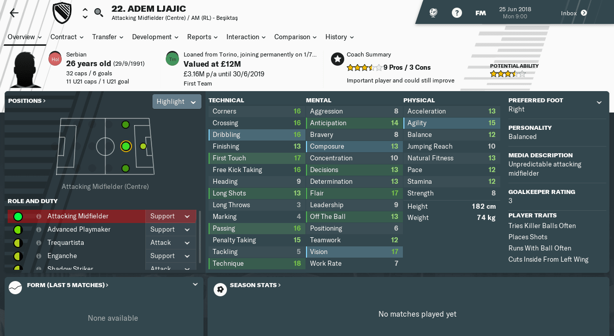Adem Ljajic’in de özellikleri çok iyi. Özellikle teknik tarafında çok çok güçlü. Zaten 12 milyon pound’luk bir değere sahip. Oyuna Beşiktaş’la başlayan FM’ciler, bir müddet sonra kendisini satarak kulübe 15-20 milyon koymak isteyecektir.