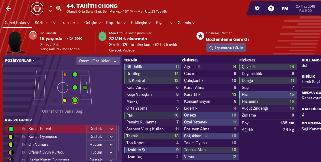 Hız, hızlanma daha şimdiden ortalama olarak 15 ratinglerde. Bu da ona wonderkid dememiz için yeterli. Dripling ve teknik özellikleri de gayet iyi. Şöyle 2 - 3 yıl güzel antrenman yiyince kanatlardan fırtına gibi esecek.