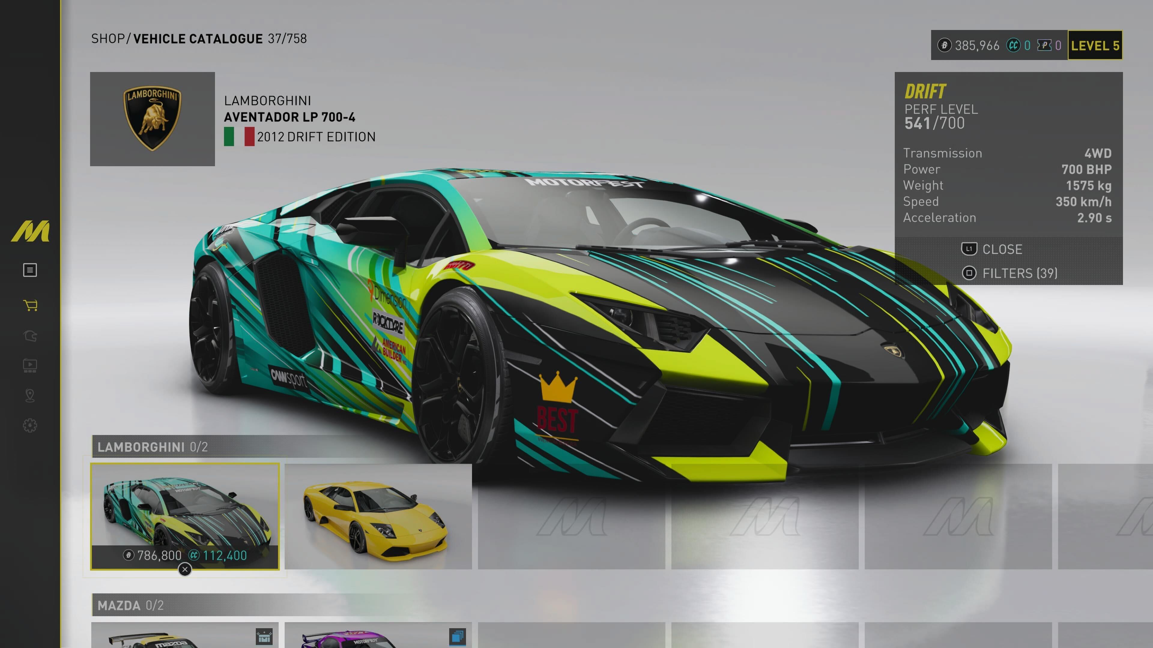 - Lamborghini Aventador LP 700-4 - 786,800 kredi