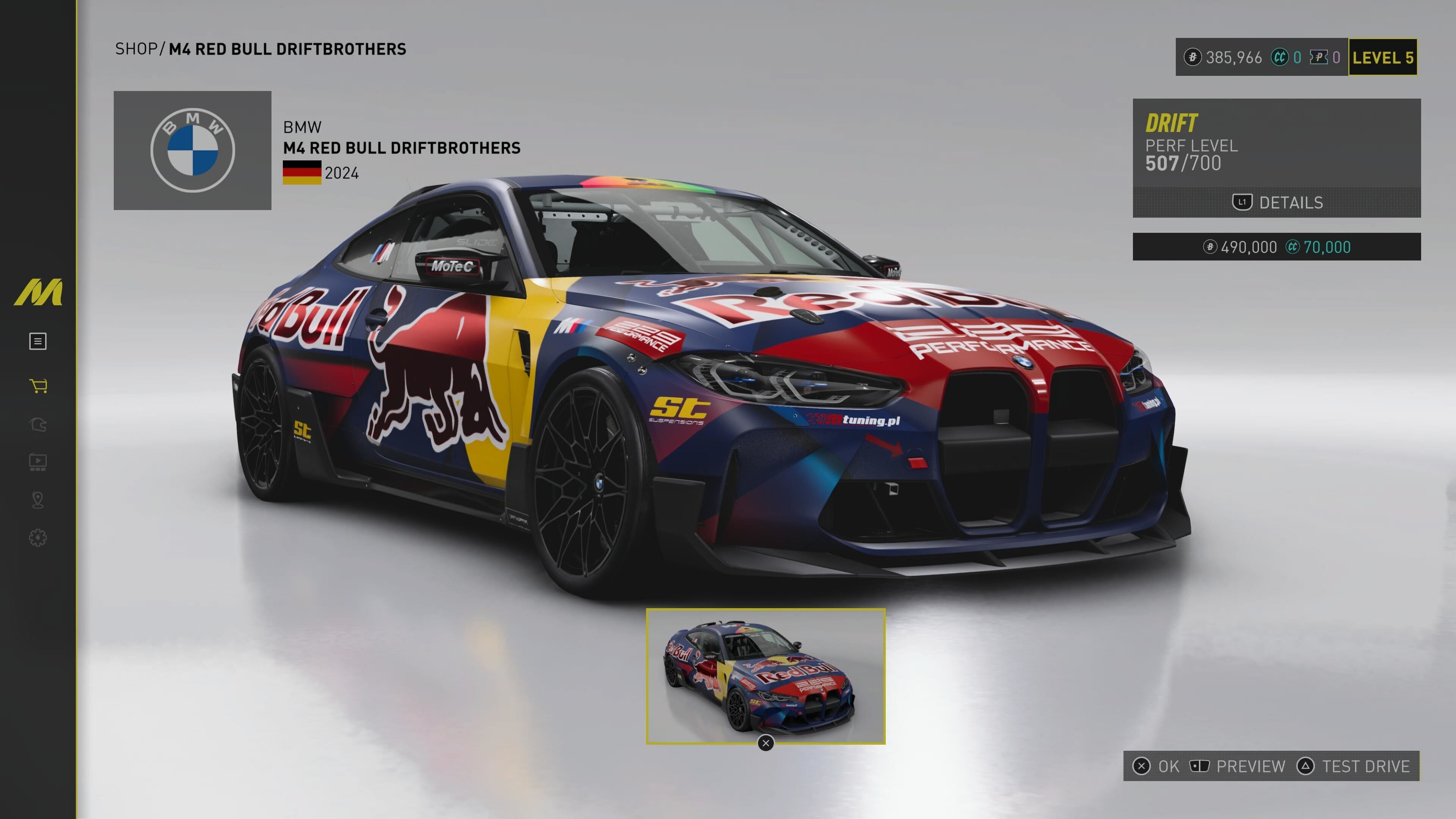Mümkün olan en kısa sürede edinmeye değer harika bir Red Bull logolu drift aracı da var. BMW M4 Red Bull Driftbrothers Edition harika bir seçenek ve The Crew Motorfest mağazasında 490.000 krediye satılıyor.