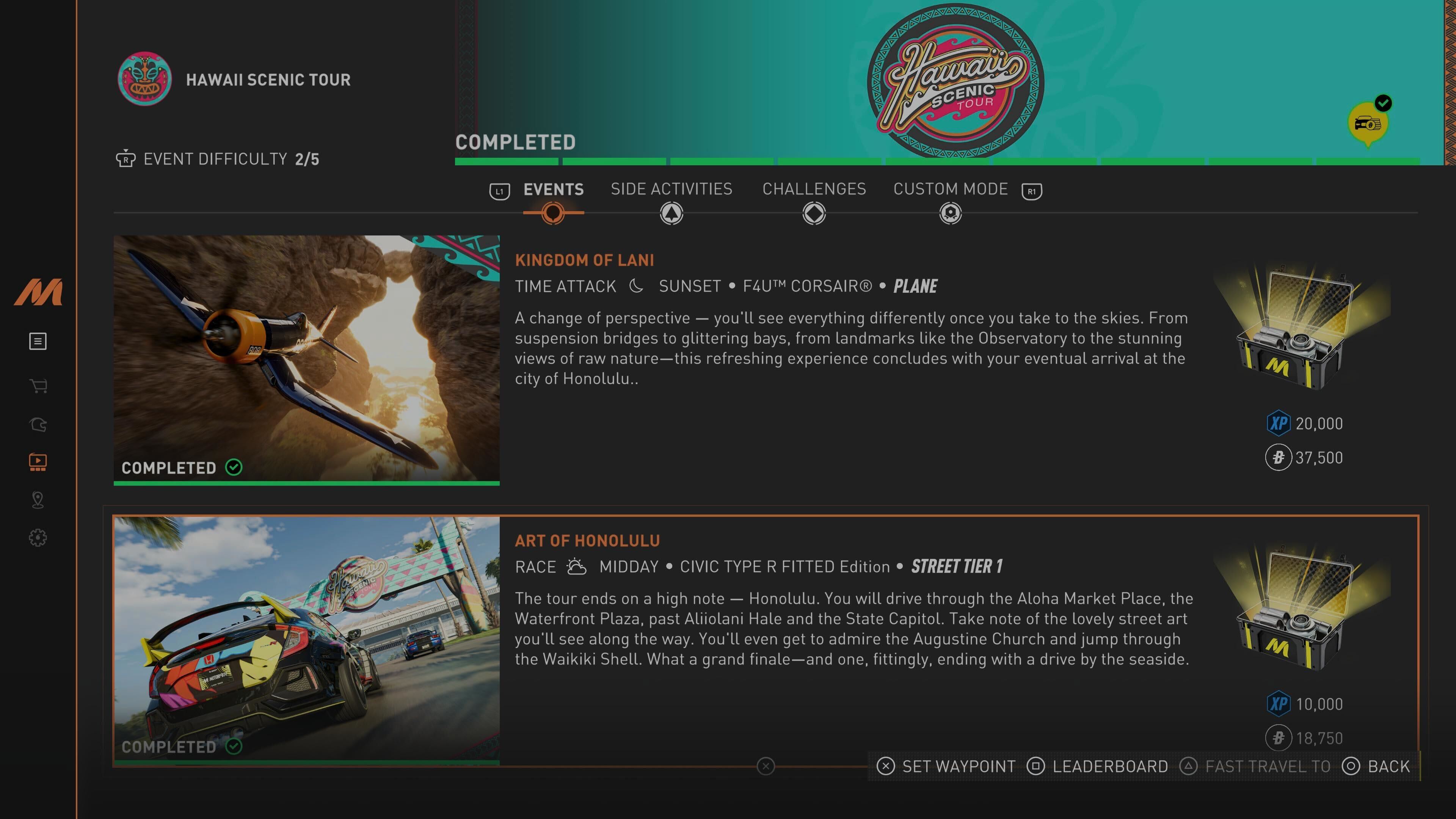 İlk oynaman gereken liste Hawaii Scenic Tour. Genel anlamda sıradan bir liste gibi görünse de para kazanmak için aradığın her şeyi sunuyor.