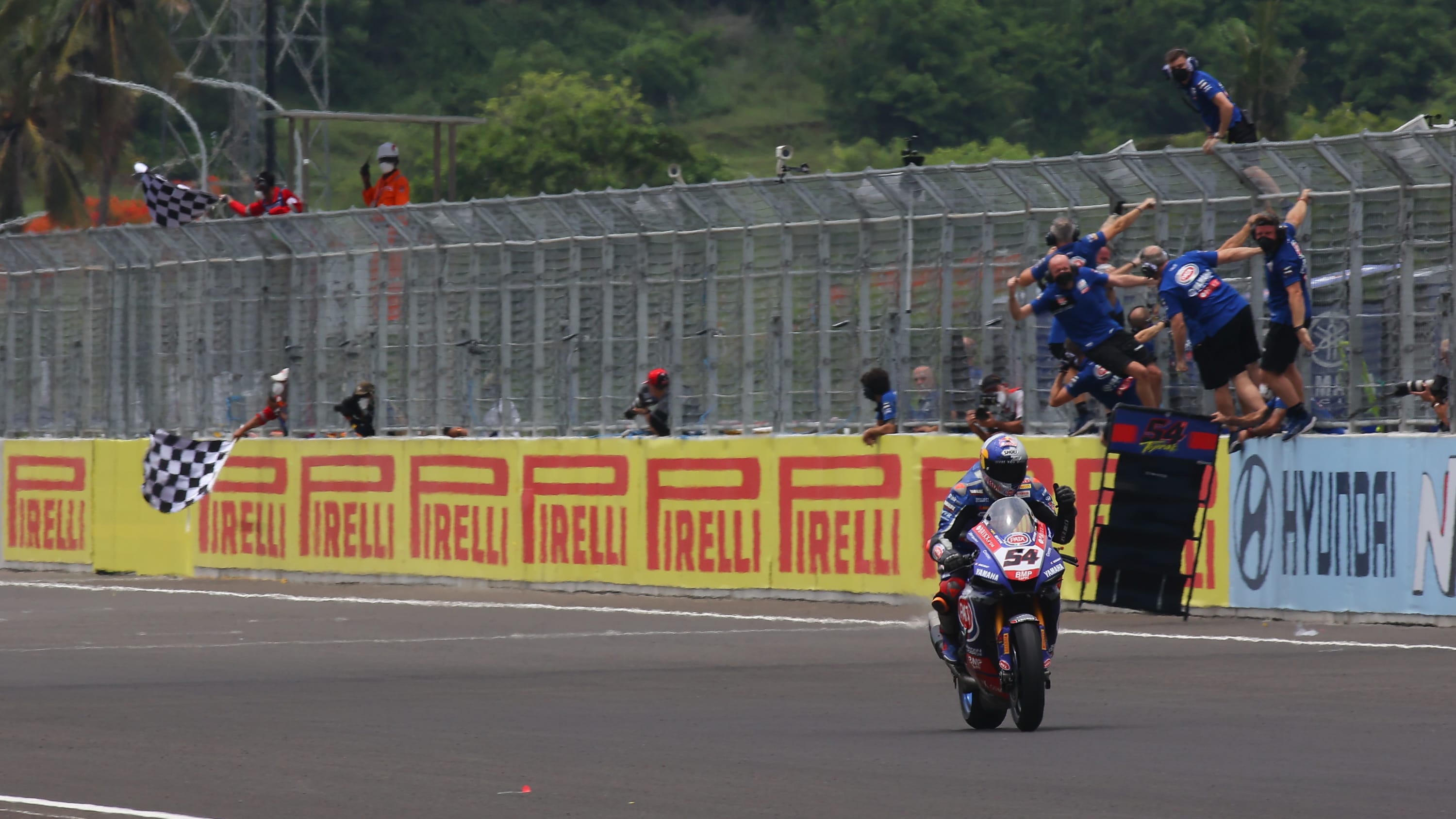 Red Bull sporcusu Toprak Razgatlıoğlu, Dünya Superbike Şampiyonası'nda sezonun son durağı olan Endonezya'daki ilk yarışı ikinci sırada tamamlayarak şampiyonluğa ulaştı ve motor sporları tarihimizin en büyük başarısına imza attı.