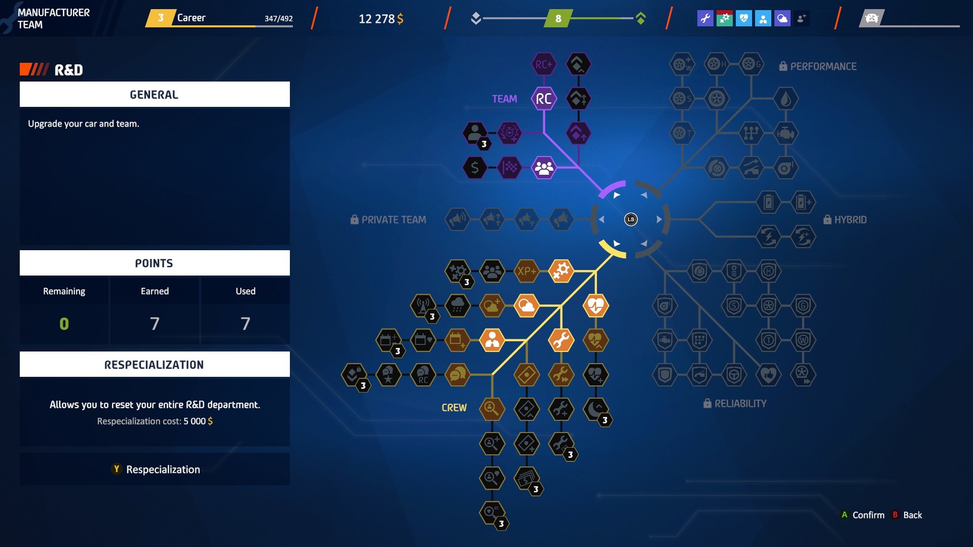 Uzun soluklu ve daha detaylı bir serüven için ilk tercih kariyer olacaktır tabii ki. Bu bölümde sadece direksiyon sallamıyor, bir ralli takımını tepeden tırnağa kontrol ediyoruz. En başta araştırma ve geliştirme departmanı sayesinde otomobil ve takım performansını artırmak gerekiyor. Kariyer bölümündeki diğer önemli başlık ise personel yönetimi ve bu bölümde farklı departmanlar için daha iyi takım elemanları işe alabiliyoruz.