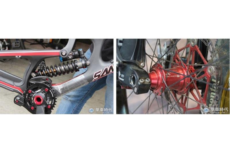 變速系統部分,有的下坡車款會搭配「變速箱」,搭配「拉鏈器」這項配件,可以防止後變受到撞擊時,可能產生的掉鏈情況,同時也有便於保養、外觀簡潔等優點。