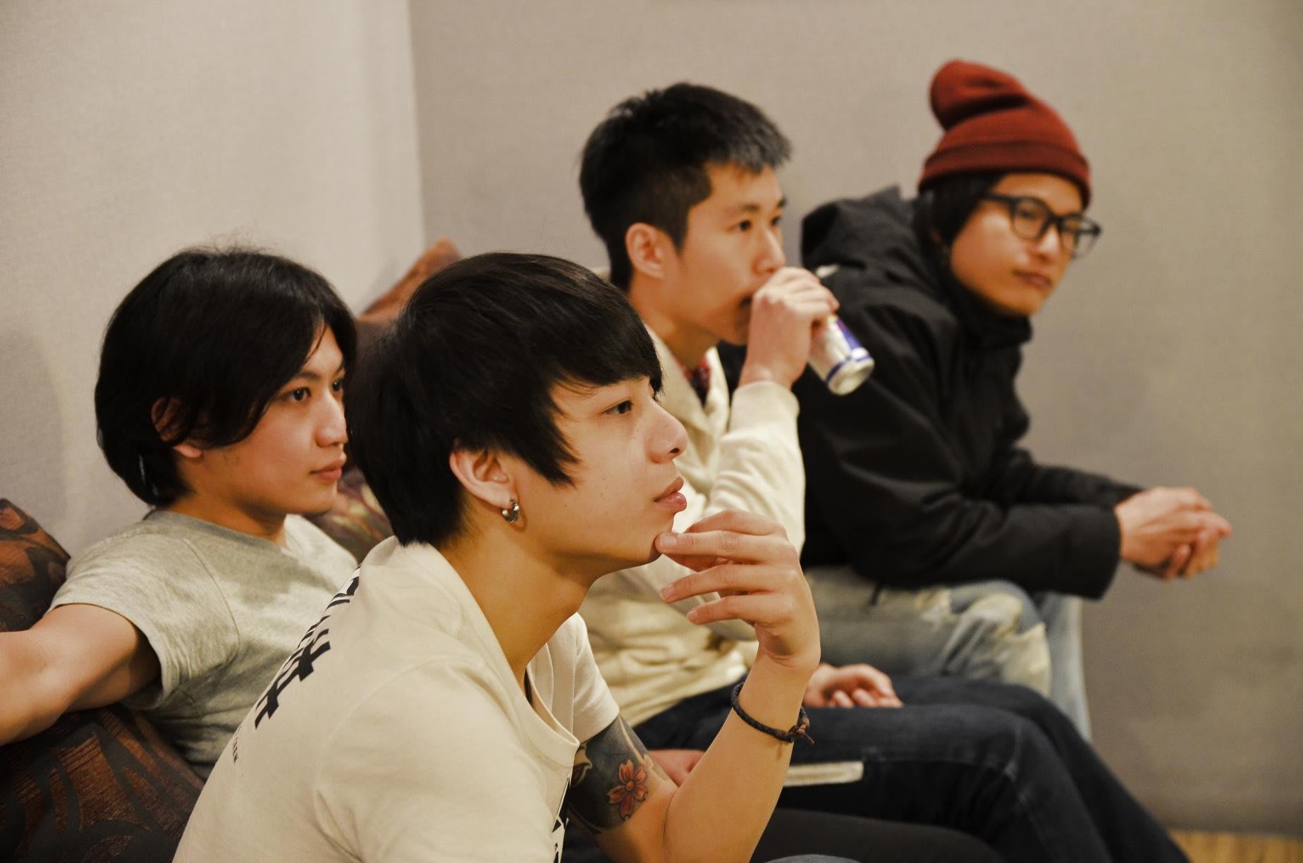 一開始大家對於”專訪”看待得有點拘謹,與烙印之日團長Sui的訪問之約,有四位團員出席,另一位團員吉他手阿任則於最近入伍。開頭的自我介紹并然有序,顯然尚未進入自在狀態,由最早的創團成員鍵盤手暨主唱阿斌打頭陣,退伍後重新將茄子蛋復團的團長,接著是正在就讀台大化工所的貝斯手遠朋,乍看略有偶像派模樣的吉他手阿德,最後是目前唯一有女朋友,常常為了女友而忽略樂團事業的鼓手小賴;四個人的介紹都很簡短,但實際上每個人內心都有滿溢至頂的夢想理念、想做的事和正在做的事和知音分享。