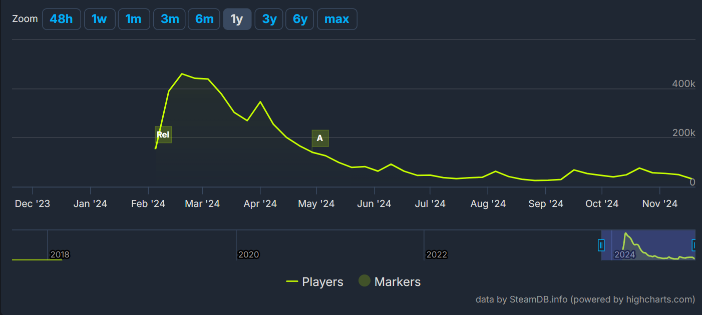 那看看STEAM吧,作為世界規模的遊戲平台,這個量體總夠客觀了,STEAM上雪崩式掉落的同時上線玩家數量足以說明一切