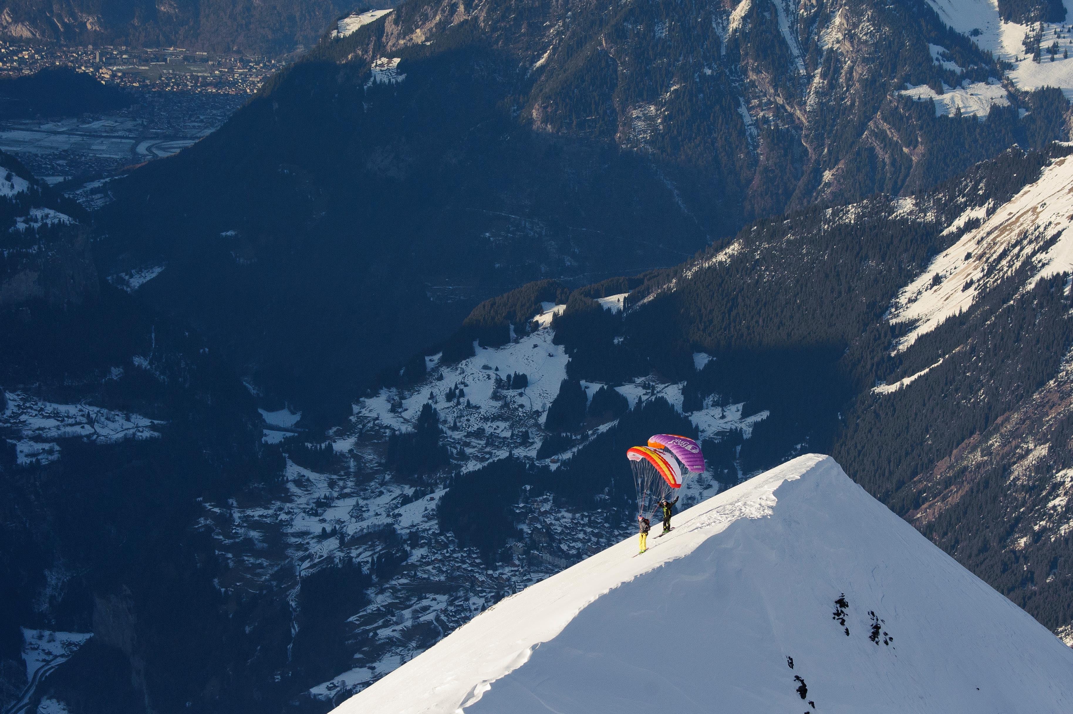 製片師Alex Aimard接下了困難挑戰——跟著這群人越過Les Diablerets峽谷,在目不轉睛盯著大夥的同時,還得操控自己的飛行器具。「整項計畫裡其中一項重點就是這座峽谷,」Alex Aimard說,「我想做這件事已經有一段時間了,但一直沒機會⋯⋯。飛越峽谷,應該沒有更厲害的方式了;而且我還拍到了滿意的畫面——雙贏!」
