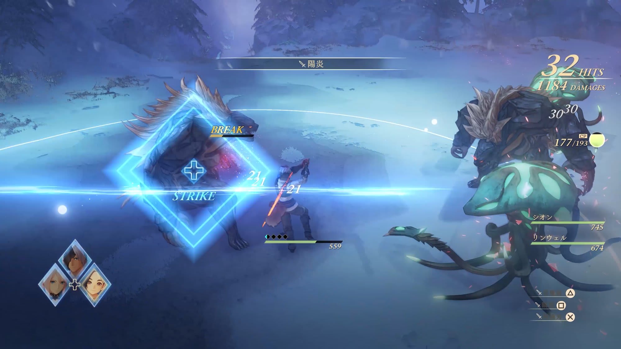 總之這次的《破曉傳奇》因為以新的AG(Active Gauge/行動量表)和CP(Cure Point/治癒點數)制取代以往的TP,將進攻和治癒所需的資源拆分為兩種,並各自有著不同的回復機制,等於是只要你掌握到這個系統的梗概,就可以半永動的在戰鬥中無限循環、無限連段