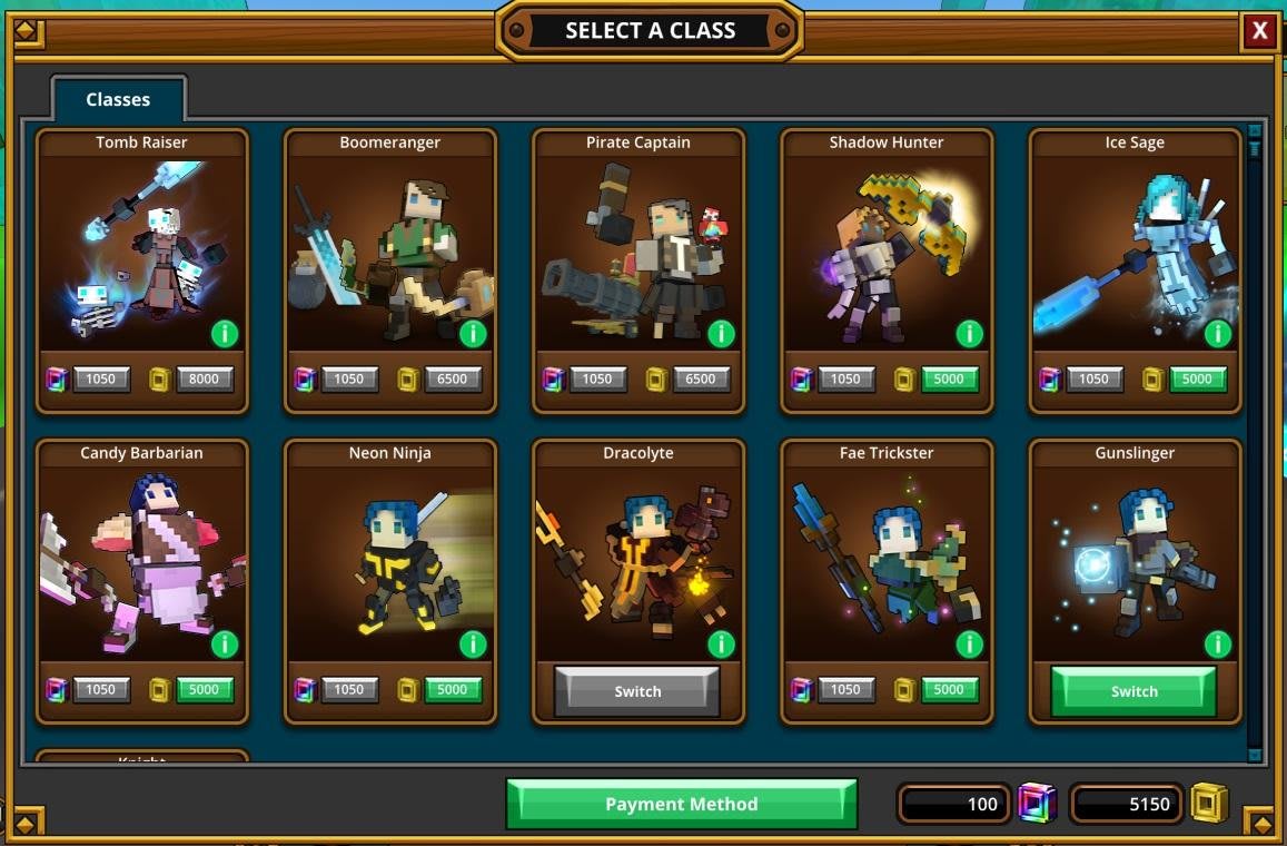 只要在遊戲中找到衣櫃,就能進行職業切換,當然每個職業等級是獨立計算的。職業的推陳出新也是《Trove》遊戲的擴充重點,初期幾個職業後陸續又擴充了「暗影獵人Shadow Hunter」、「海盜船長Pirate Captain」及最新的「回力鏢遊俠Boomeranger」、「死靈喚士Tomb Riser」等,不論是外觀酷炫還是玩法獨特都別出心裁的新選擇。(而且仔細看看職業英文原名或形象,當中能發現不少梗!)