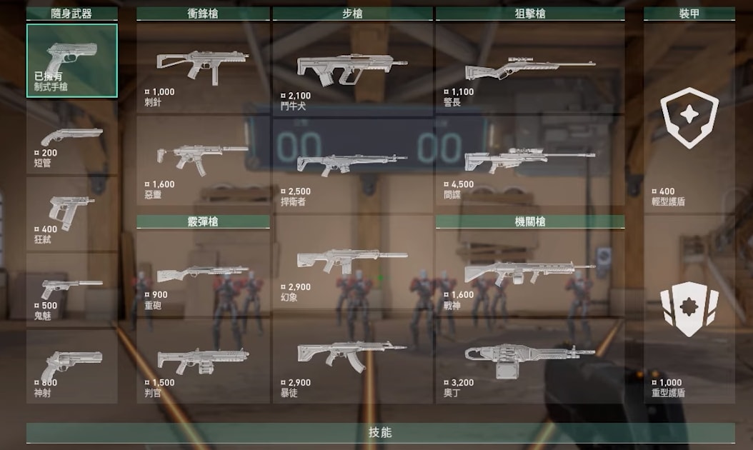 槍枝主要分類為,近距離散彈槍、中遠距離步槍、狙擊槍,開場第一局的小槍局相當適合能夠近戰爆發的散彈『短管』、和能三連發的『制式手槍』;如果是面對中遠程的對局,則可以考慮適合中遠程爆頭的『鬼魅』,用法也接近CS的警察小槍。