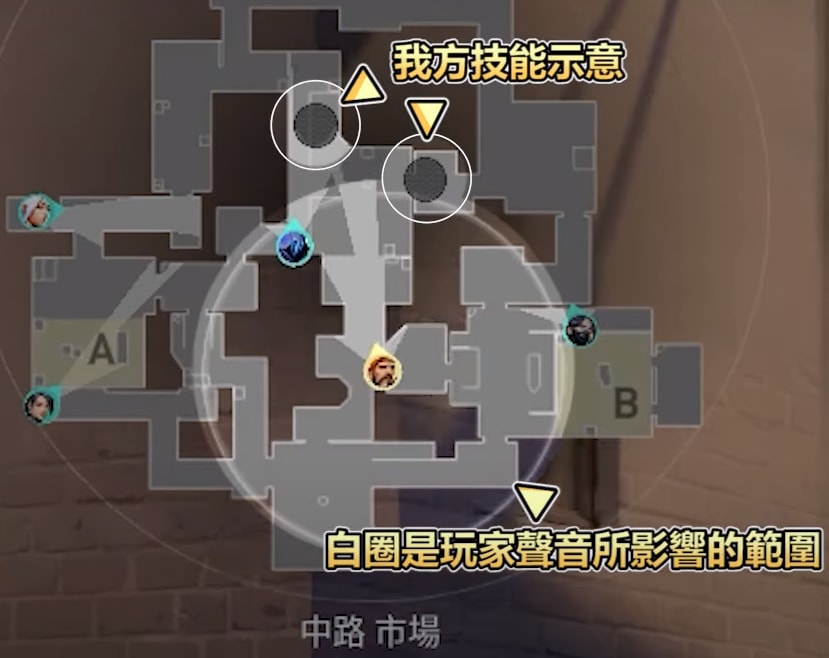 基本上在每張地圖中都會有多條攻擊路線,以及兩個或三個炸彈放置點,畫面左上角也會有小地圖讓我們辨識自己所在地,按下鍵盤上的M還可以呼叫大地圖方便進一步的路線規劃,而且和英雄聯盟一樣,只要在地圖上點擊就可以用標記和隊友迅速交流,地圖上也看得到友方施放的技能和炸彈點,善用地圖能夠加快全體的攻略速度