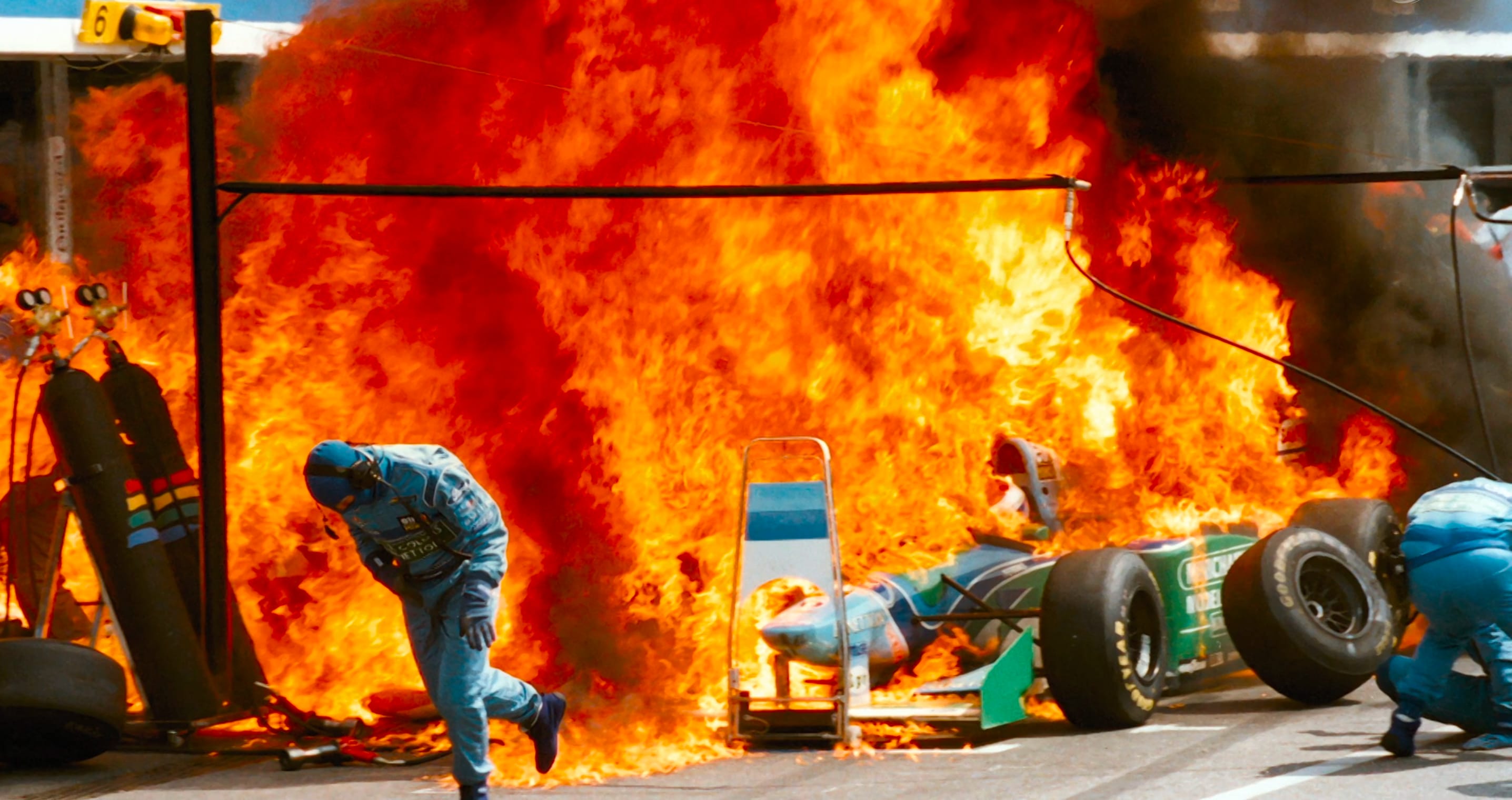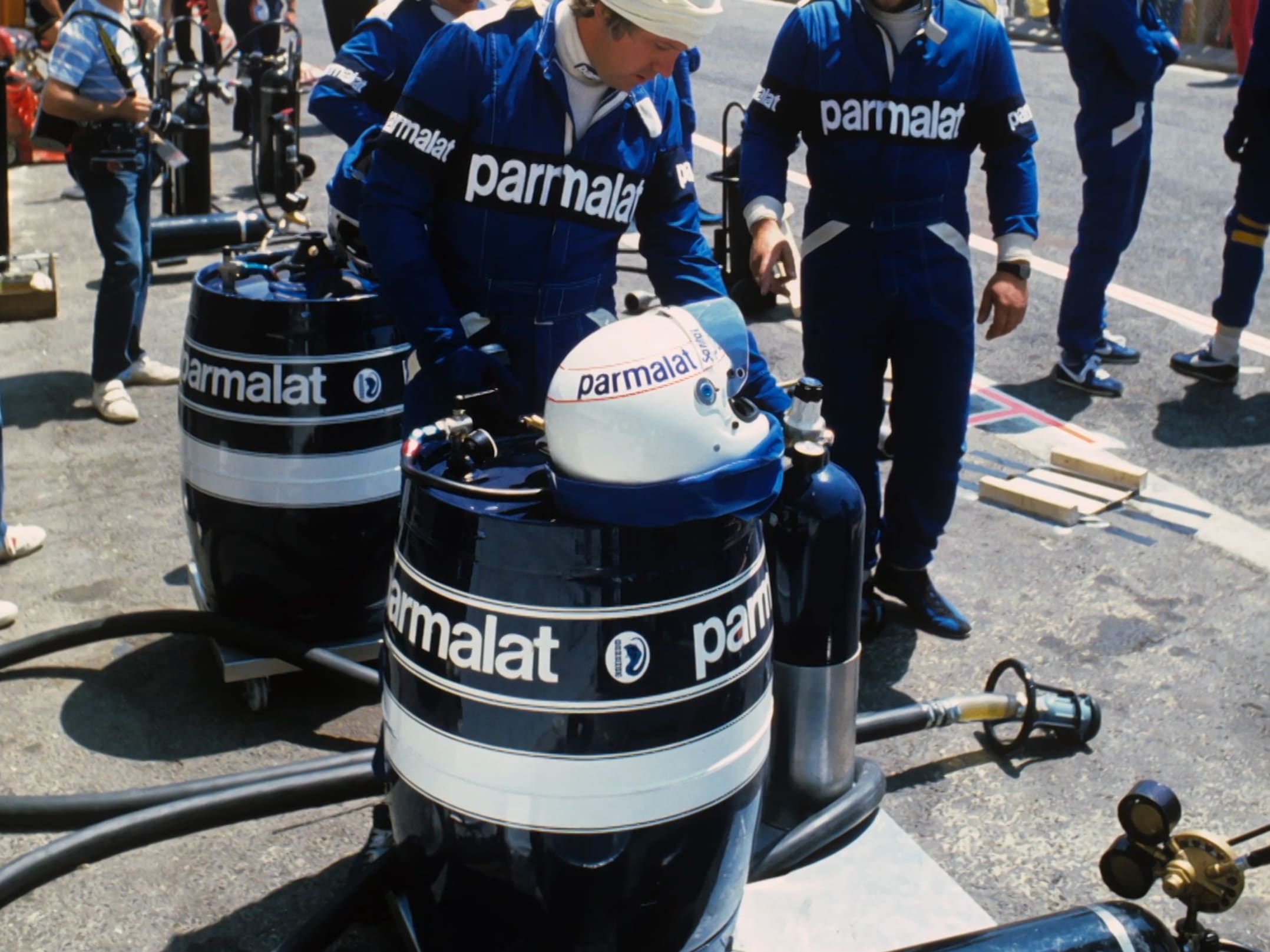 Піт-стопи навіть не були обмежені бар'єром — від траси їх відокремлювала лише намальована розмітка на дорозі. Поки поруч пролітали боліди на швидкості більше 200 км/год, механіки уважно робили свою справу. Їх було в основному двоє, тож роботи було багато.