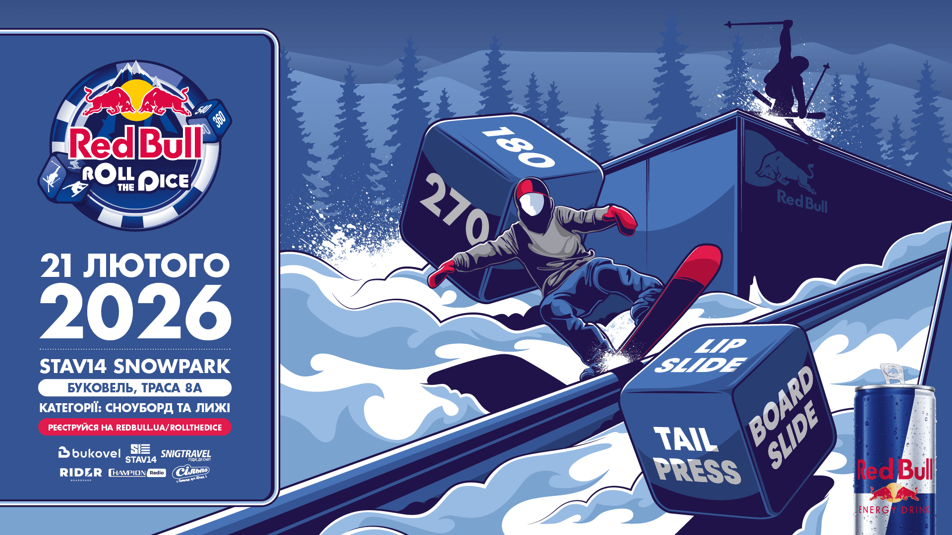 Реєстрація на Red Bull Roll the Dice Україна триває. Не пропусти свій шанс стати частиною перших унікальних змагань з джиббінгу та поборотися за звання найкращого лижника чи сноубордиста. Участь у турнірі безкоштовна!