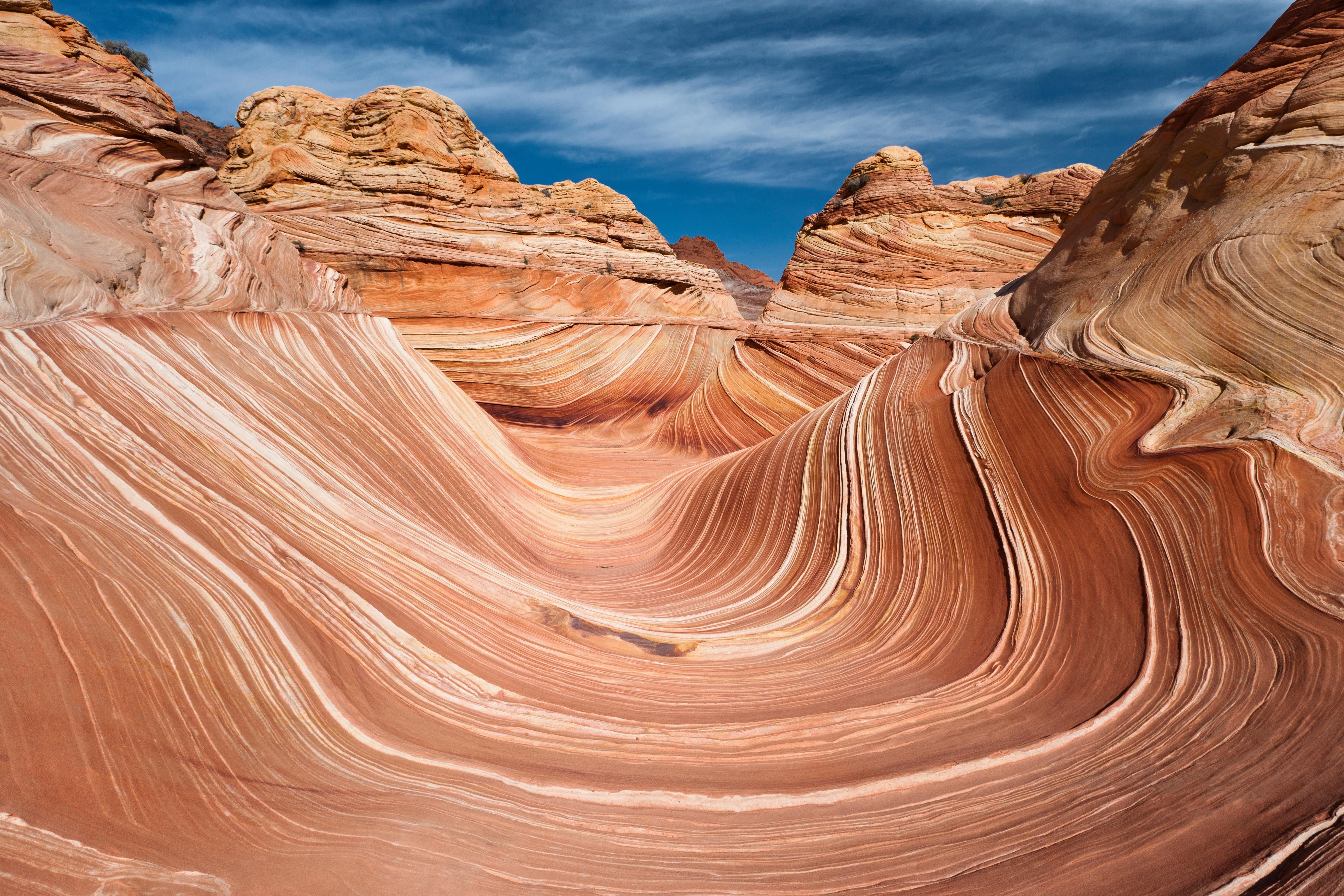 It could host a scene from "Star Wars," with space pods racing overhead. This sandstone rock formation is called The Wave, located near the Arizona-Utah border on the slopes of the Coyote Buttes.