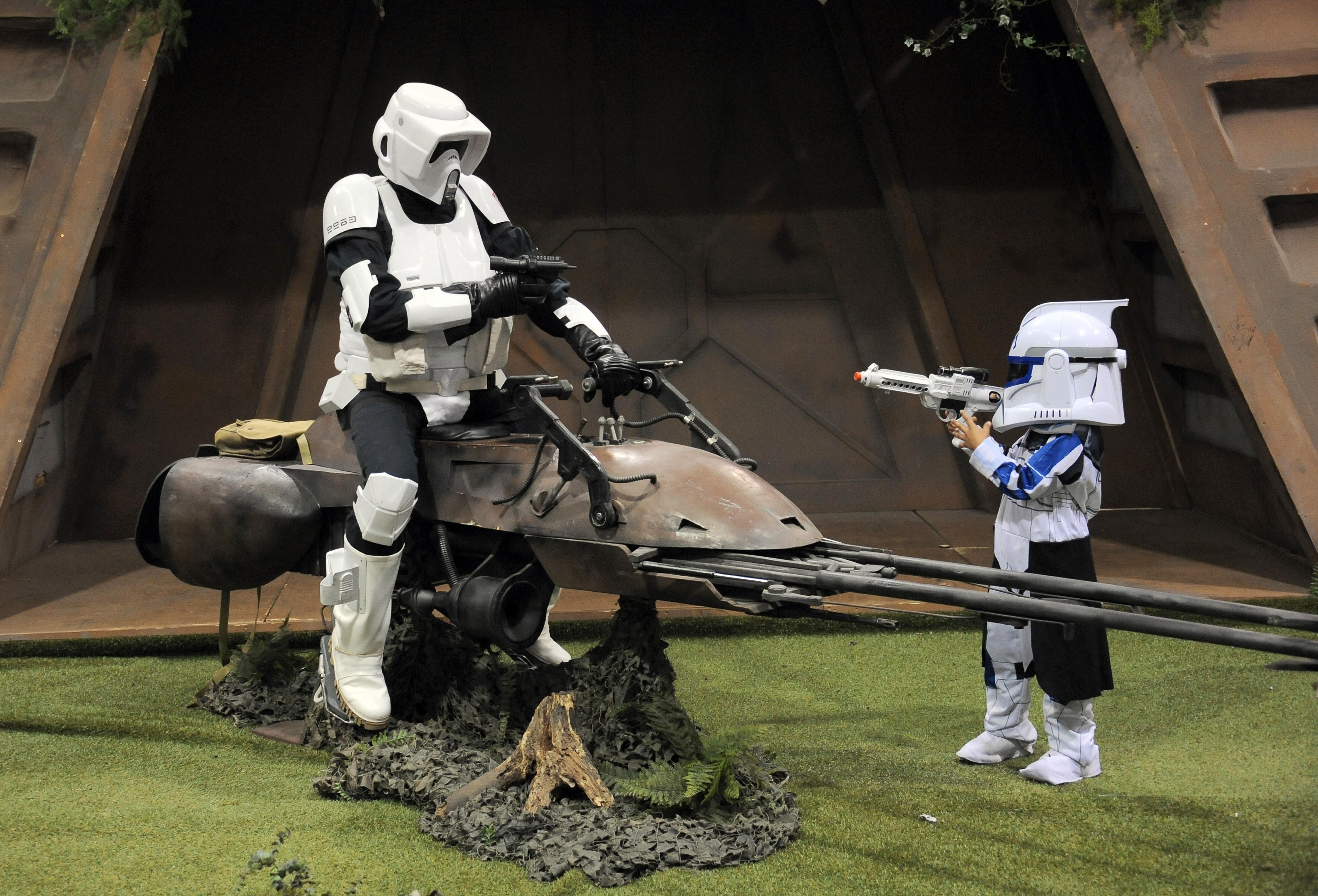 The 74-Z Speeder Bike is kind of like riding a turbine-powered, laser-cannon equipped motorcycle that also happens to fly. Fast, manoeuvrable and fairly quiet, a speeder bike is an excellent way to sneak around the enemy while navigating the labyrinthine paths of a giant forest planet. Bonus if you happen to befriend some local living and breathing teddy bears while out on a joy ride.