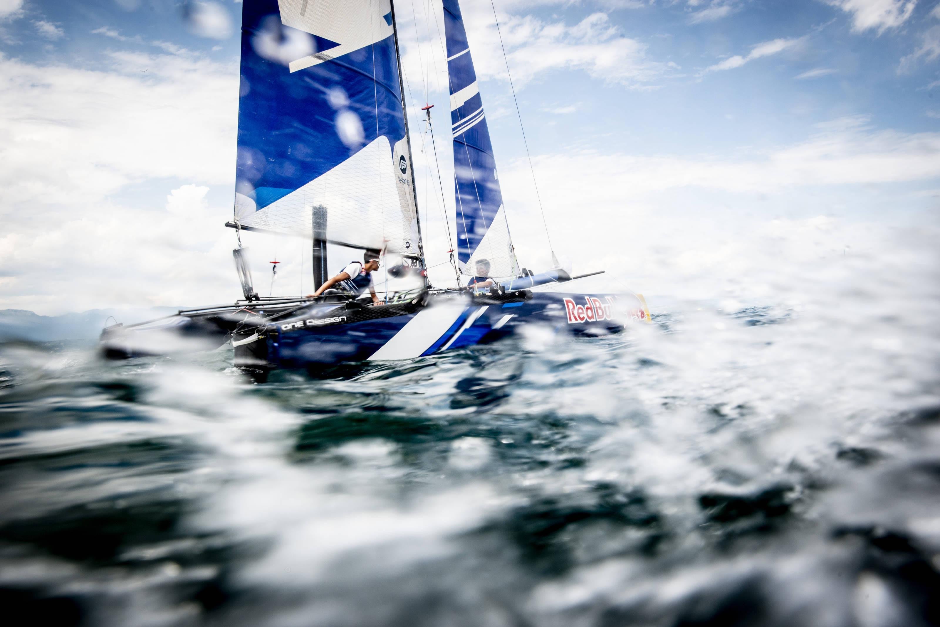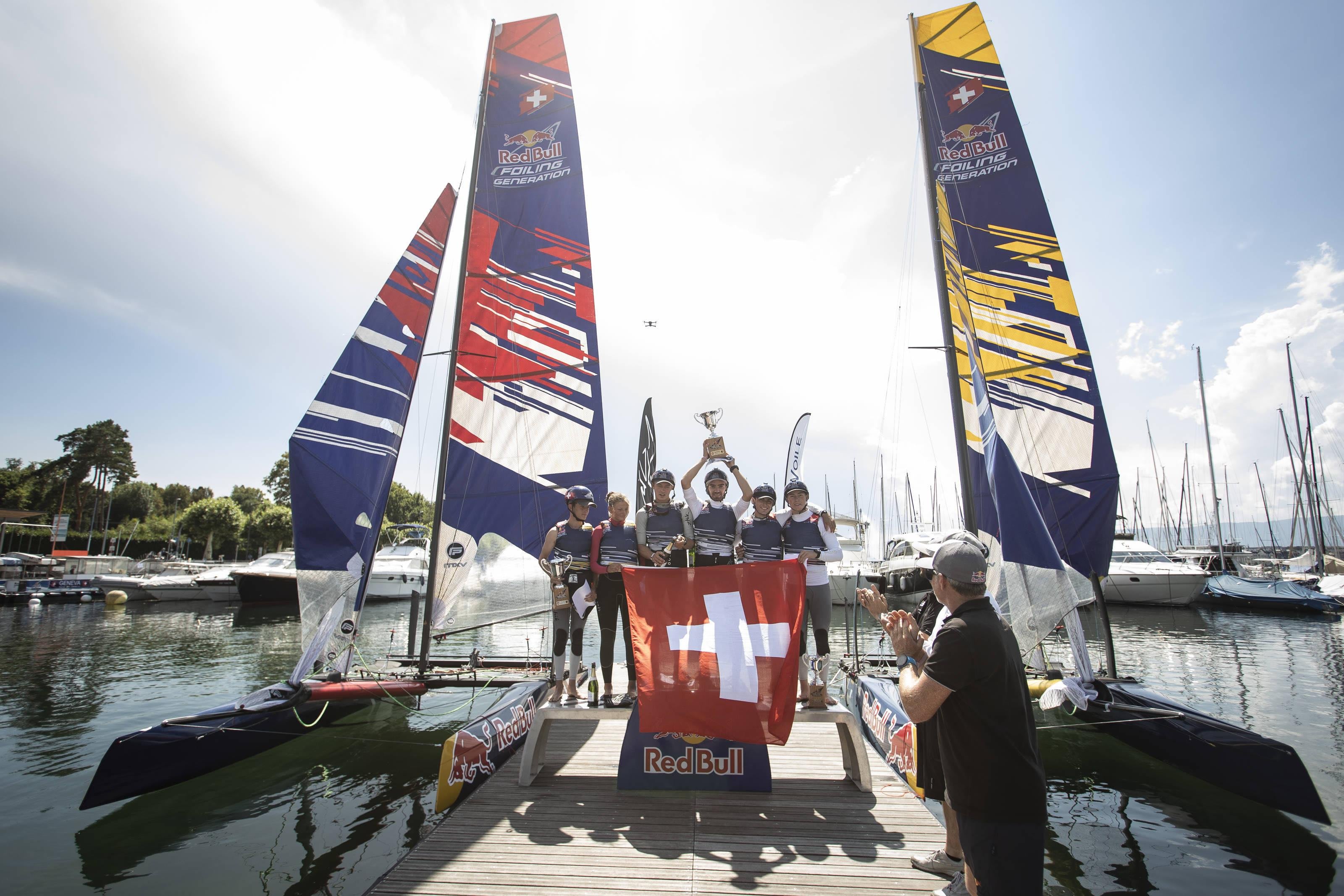 When Red Bull Foiling Generation was first introduced by Roman Hagara and Hans-Peter Steinacher for the 2015 and 2016 seasons, a stop in Switzerland – home of two-time America’s Cup winner Alinghi and masses of passionate sailing fans – was a highlight on the calendar. The 2018 return of the world’s largest youth sailing program to Lake Geneva, hosted by Alinghi’s home club, the Société Nautique de Genève (SNG), was even more exciting, as 32 top Swiss prospects aged 16 to 20, including fresh up-and-comers as well as young members of the national sailing team, seized the opportunity to get hands-on coaching from the Austrian legends and race for glory on cutting-edge catamarans.