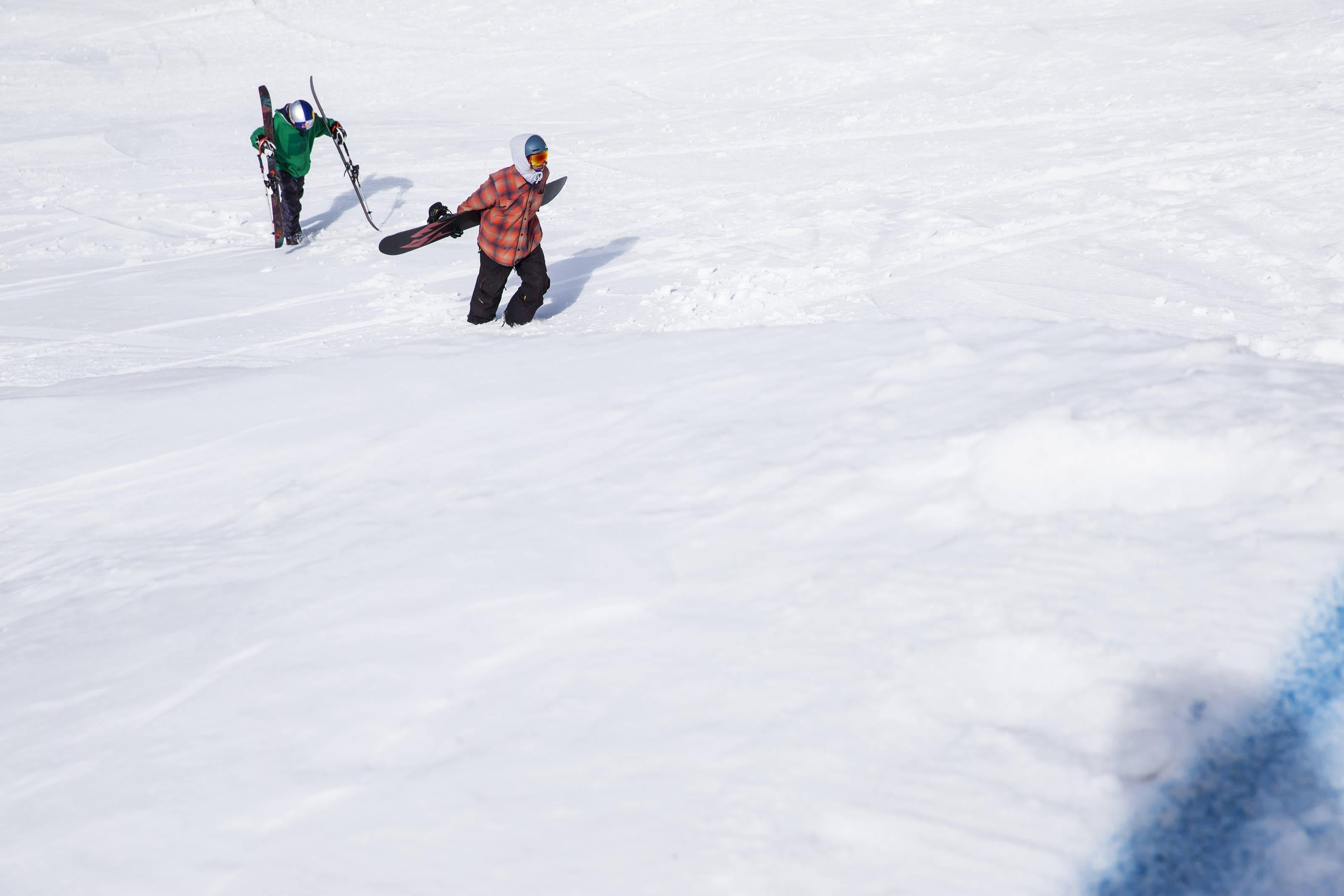 Cody LaPlante and Dylan Zellers hike back up for another hit off a feature