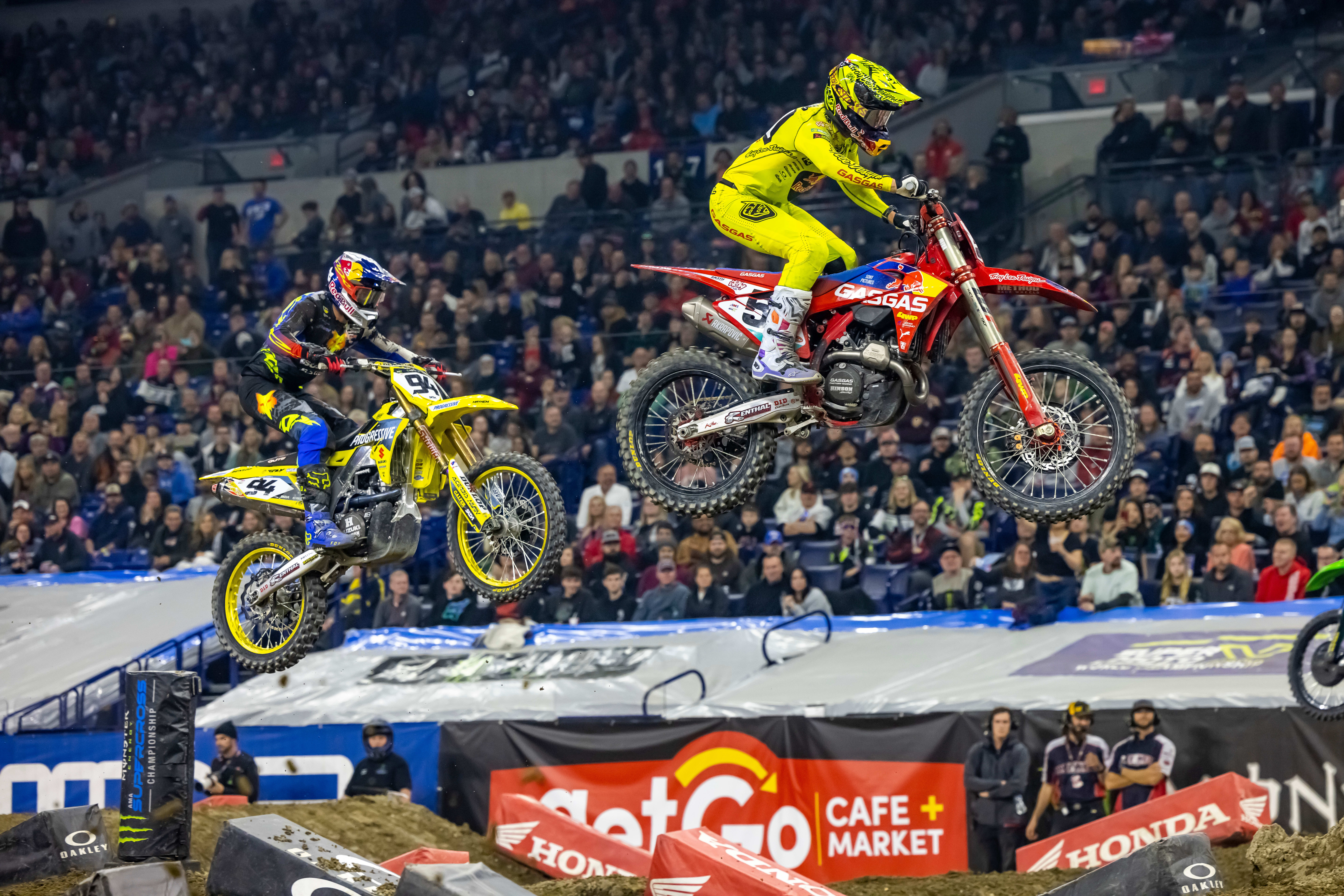 Separated by just 10 points entering round 9 of the AMA Supercross Championship in Indianapolis, Eli Tomac, Cooper Webb and Chase Sexton were embarked in one of the closest title fights in the history of the sport. But on a treacherous track inside Lucas Oil Stadium, it was a fan favorite and surprise first time winner in 2023 that would spoil the party.