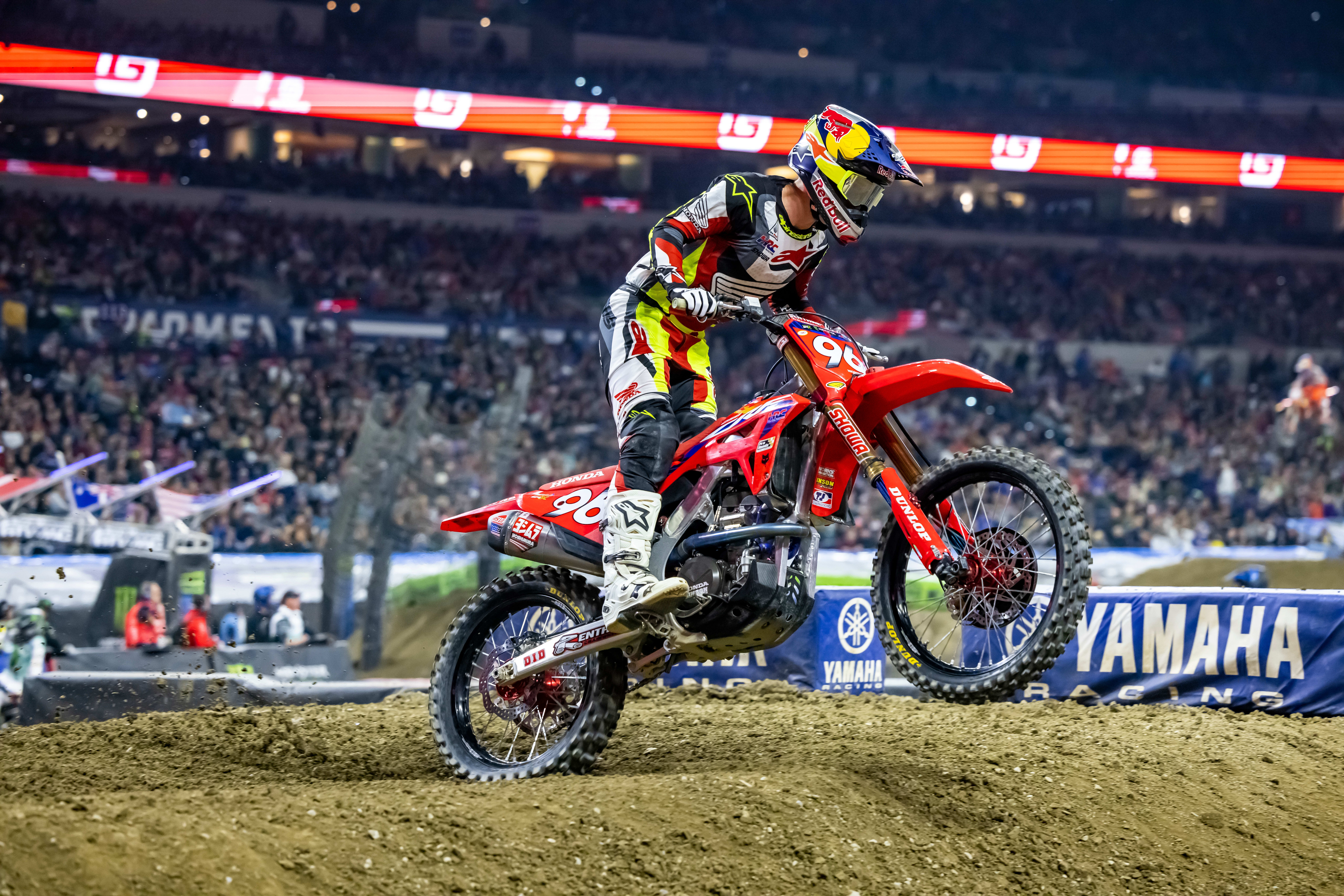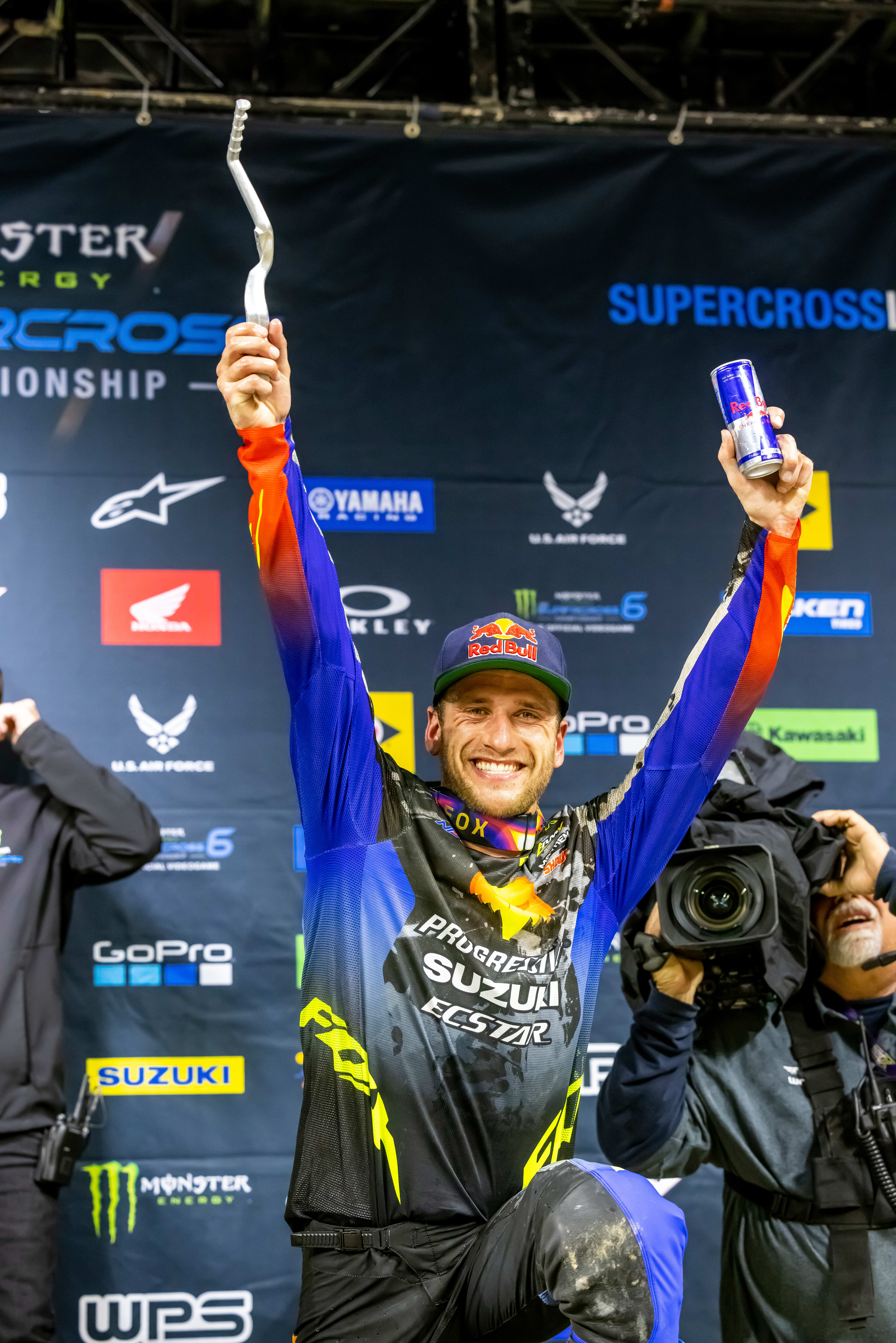 “I don’t know what to say!” said Roczen after the race. “As much as I gelled with the bike as soon as I got on it, I still feel like we had a lot of stuff thrown at us in the beginning of the season. I was on so many different setups and it was definitely tough for us, and we had some bad races there. Most importantly, we never gave up. The team and I, we were at the track sometimes until 7 p.m. sometimes, especially the week before Tampa. We just weren’t letting off until I felt like we could. This night tonight, I’ve dreamed about it for many, many months, and it seemed so far away, especially after these last few races.”