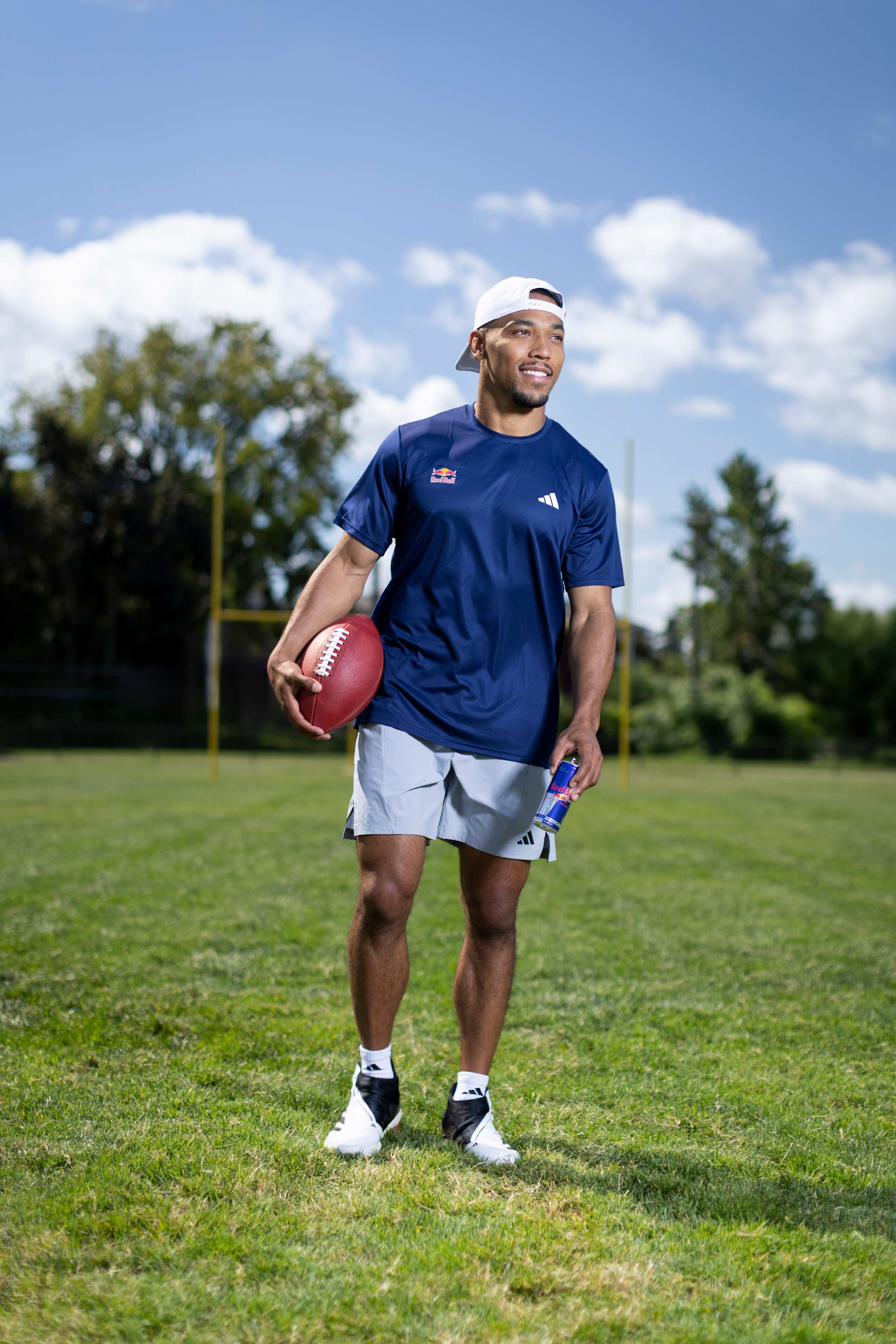 “My game is in two different genres. It can either be R&B, or it can be hip-hop/rap,” he says. “Because I play outside and inside the slot. A lot of times I’m blocking — sometimes a linebacker or safeties — so it can get real messy. But when I’m running routes, I like to be finesse. I don’t wanna be touched, so that can be more R&B.”