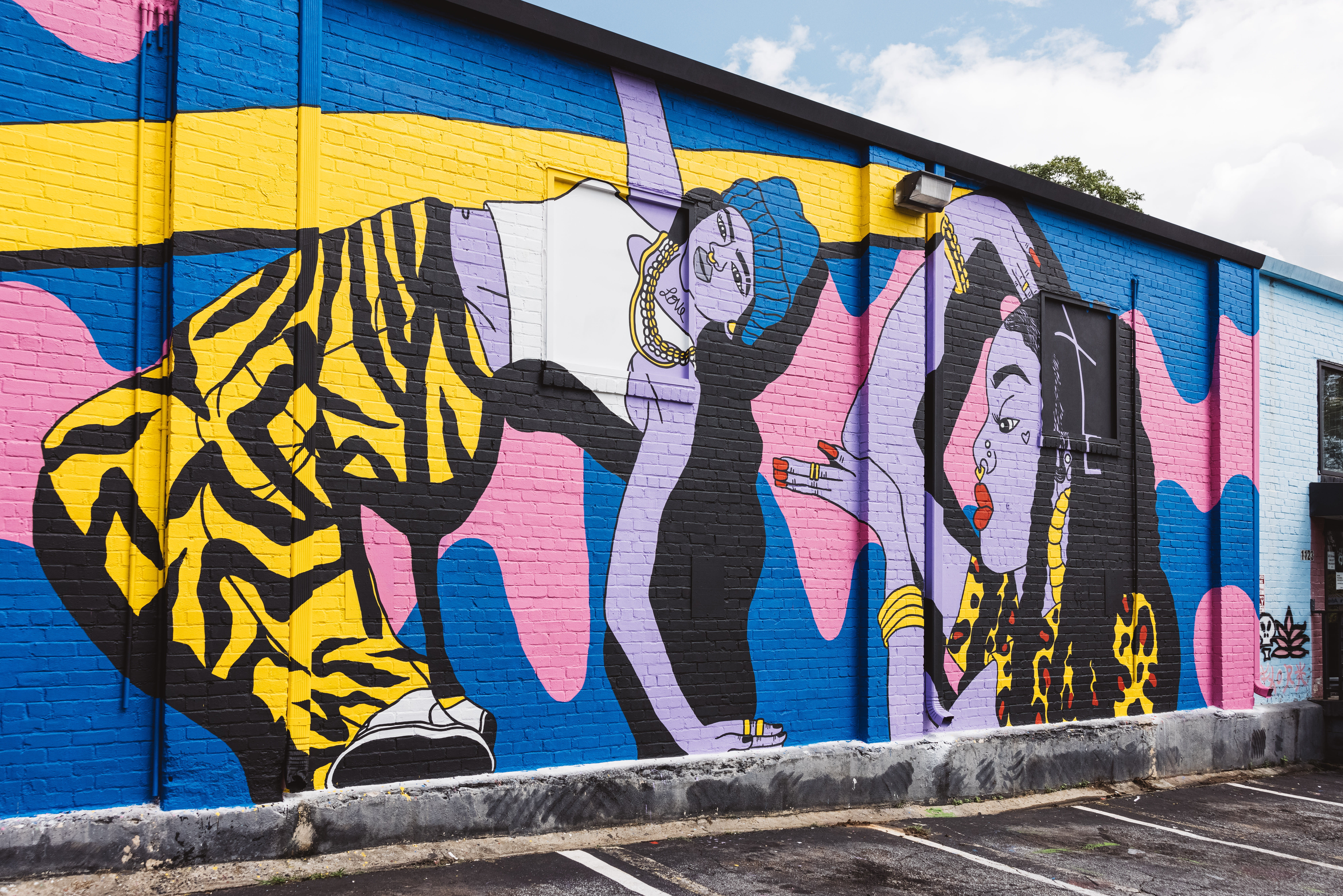 For the Red Bull Dance Your Style mural, I wanted it to be really ATL and honor the dancers here in the city so I pay homage to that one Ciara video, “Oh,” where she is dancing on the old school Cadillac, which we call “Donks.” I feel like there is so much of the foundation of Atlanta’s freestyle scene in Ciara’s early videos. There is also a girl voguing in the mural. I wanted to honor the ballroom scene as it doesn't get recognized enough as a street dance style. Of course you can find my signature rich skin shade of lavender. I always highlight people of color in vibrant skin tones because that's what we are. It is also my way of unifying cultures because you don’t focus on if it’s a brown girl or a Black girl, they’re just representative of our beautiful culture and skin shade isn’t important. Last, you find Nate with angel wings on the license plate. He’s my childhood friend who loved Donks and passed during my illustration process. This was my way of honoring him.