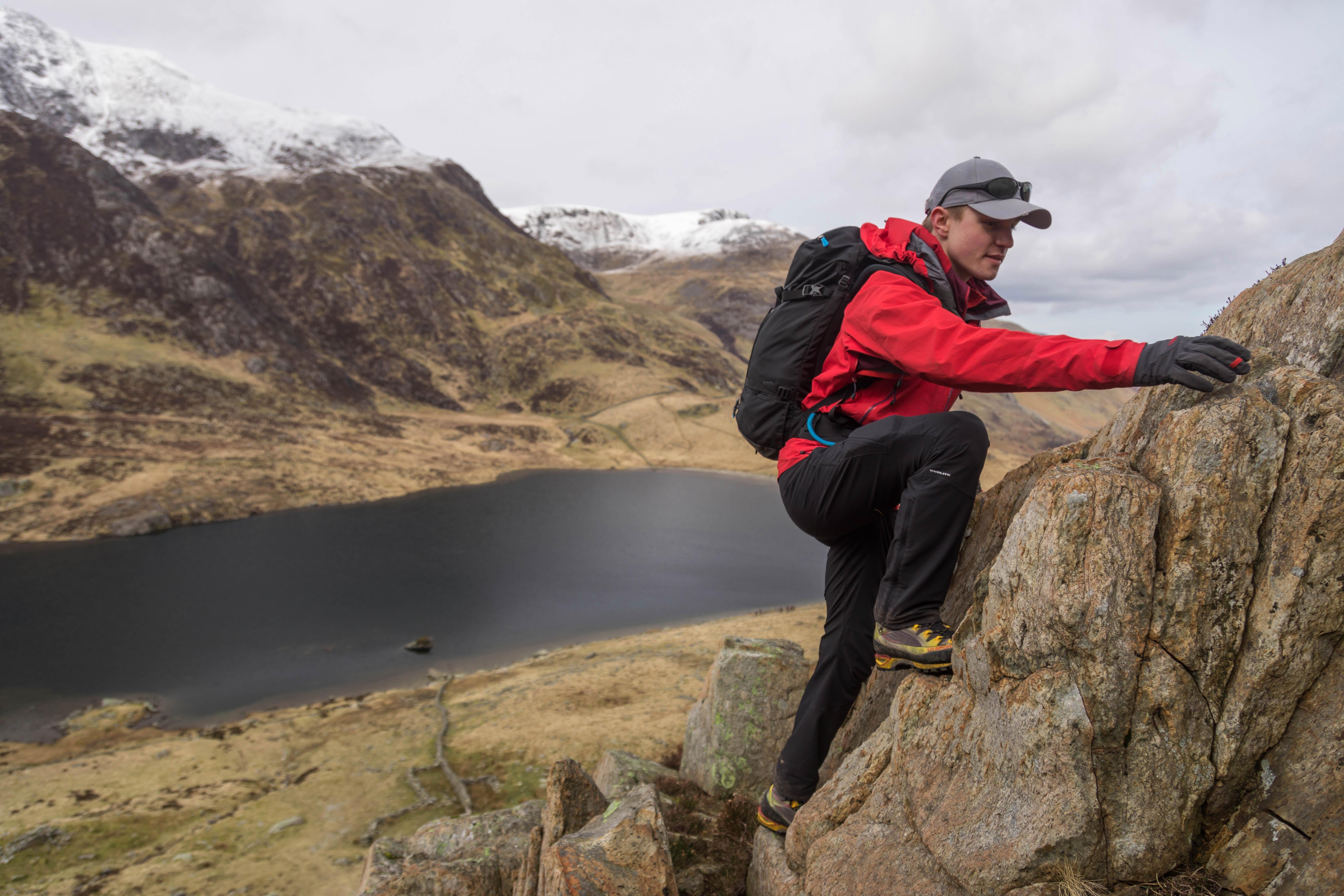 “The beauty of it is that you don’t need anything extra,” says Johnson. “If you’re going to do a bit of it and enjoy it, you can certainly go out and buy scrambling-specific footwear, but you’re using them for walking as well, they’re not as comfortable as a walking boot. If it’s bone dry, you can also wear approach shoes and they tend to be a really nice compromise – they’ll be comfortable to walk in and super grippy for the scrambling.”