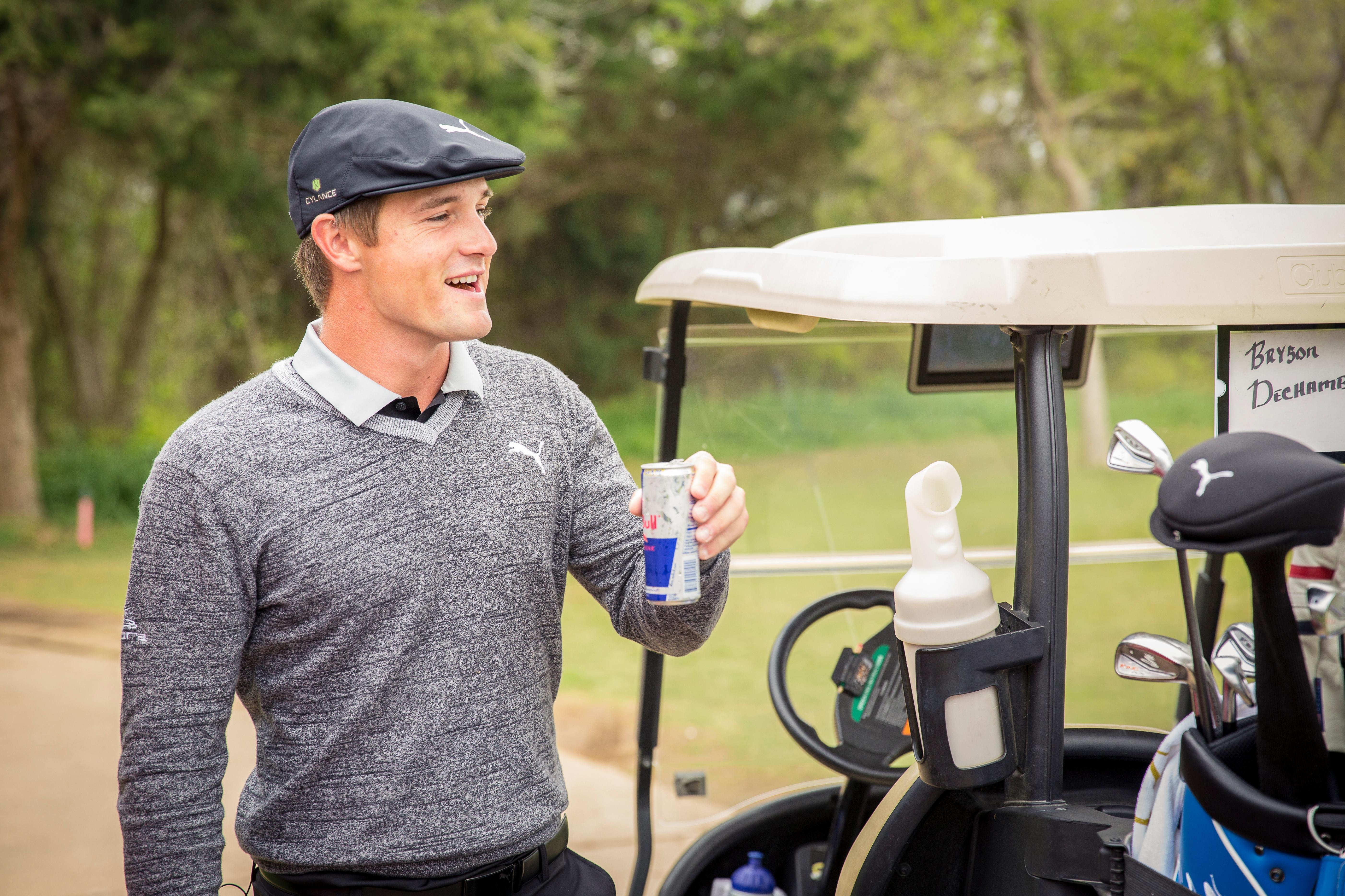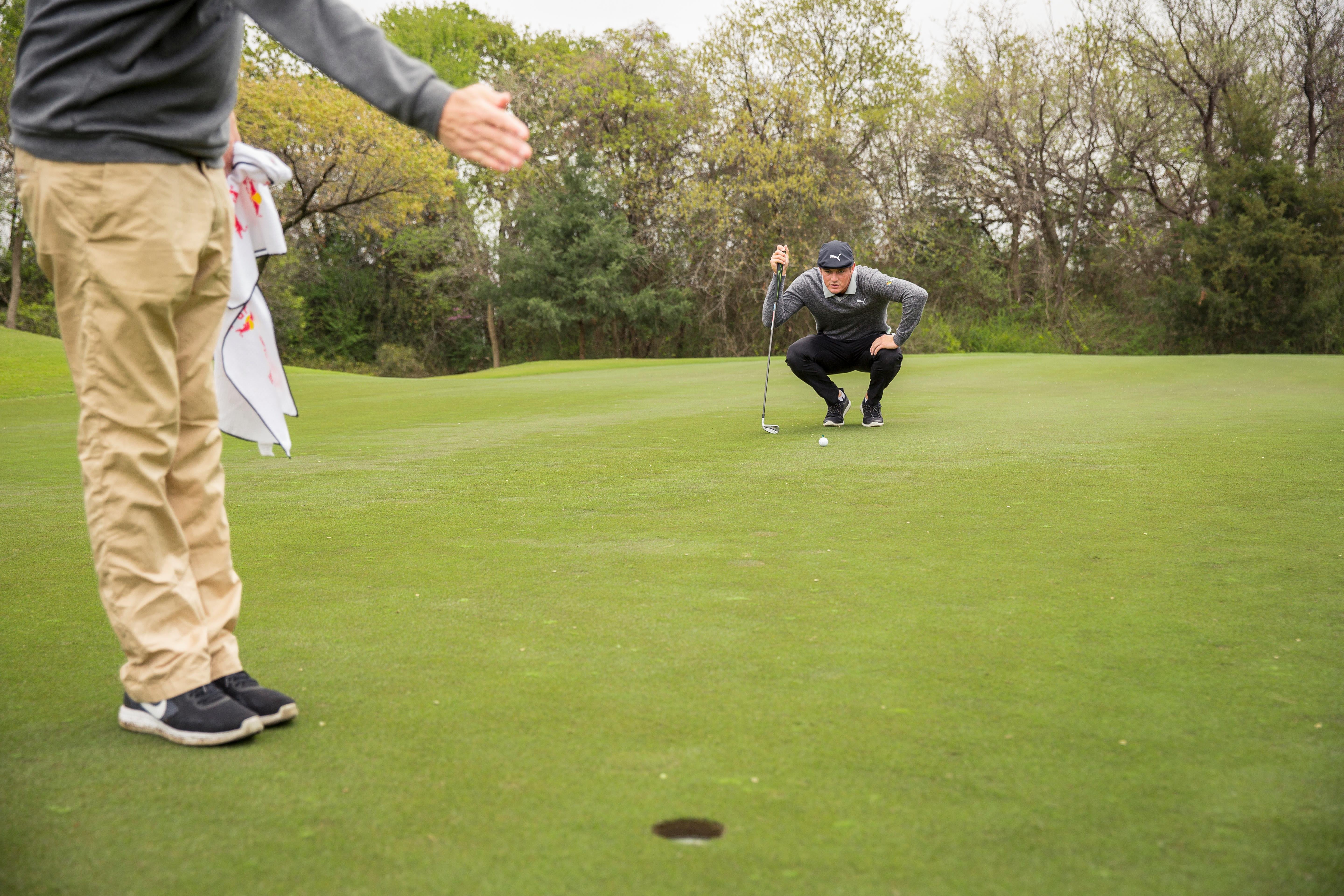 As a tribute to his victory, check out this RedBull.com exclusive video of the one-length master doing his version of the Tin Cup Challenge recently at the Texas Star Golf Course in Euless, Texas, where he only played a 7-iron — even for putts on the green and chip shots.