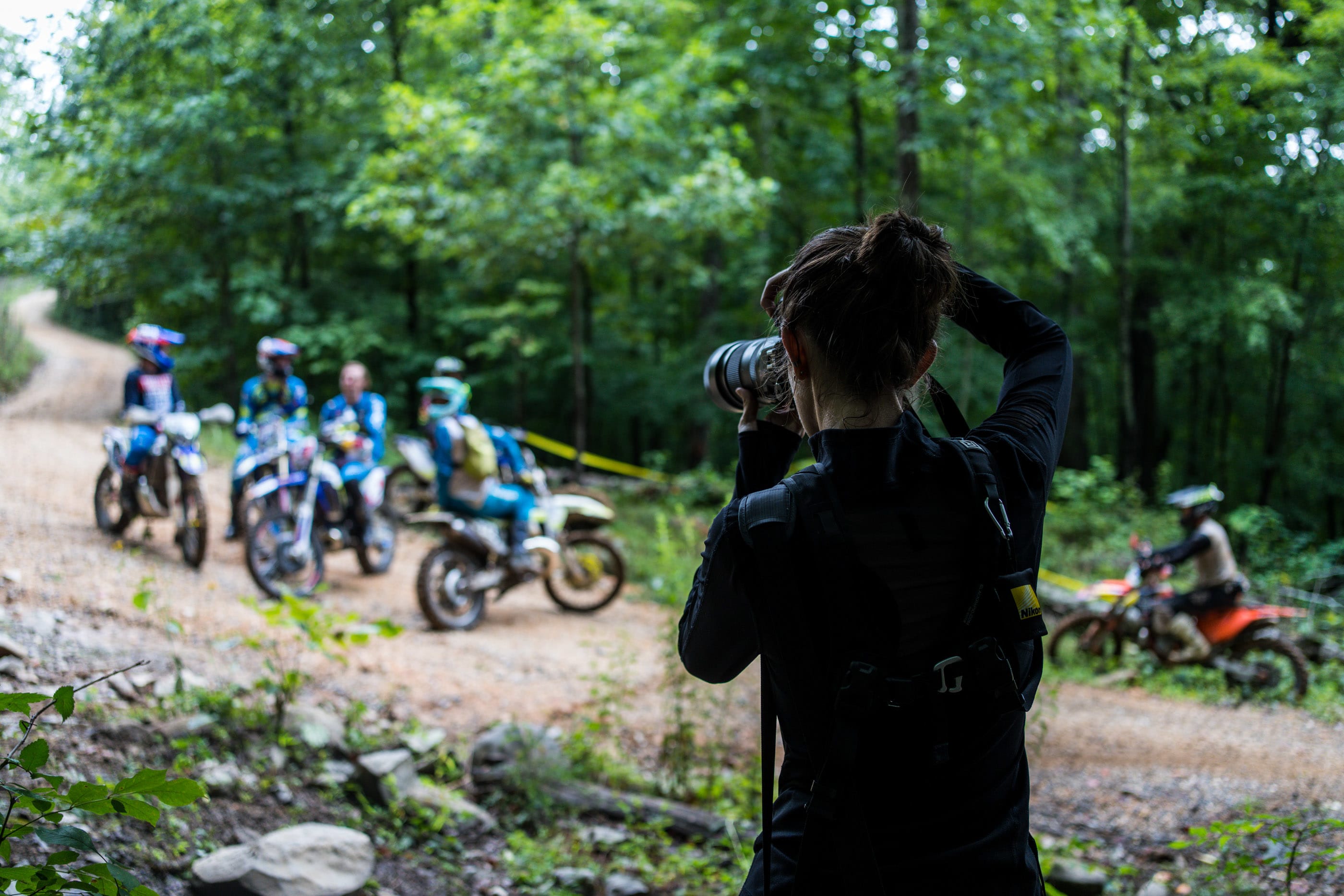 Following Red Bull Tennessee Knockout over the weekend of August 13th, three hand-selected photographers took part in a photo clinic in the mountains of Jasper, Tennessee. It’s no secret the motorsports industry is male dominated, and that means the photographers who capture the industry are often men, too. In an effort to level the playing field, Red Bull teamed up with Arena to host a workshop dedicated to bringing more photograpHERs onto the scene. The three photographers and their mentor shot an Enduro clinic where riders were also practicing their skills, and it meant carrying heavy camera equipment up and down mountainsides, clinging to trees and working hard to get just the right shot.