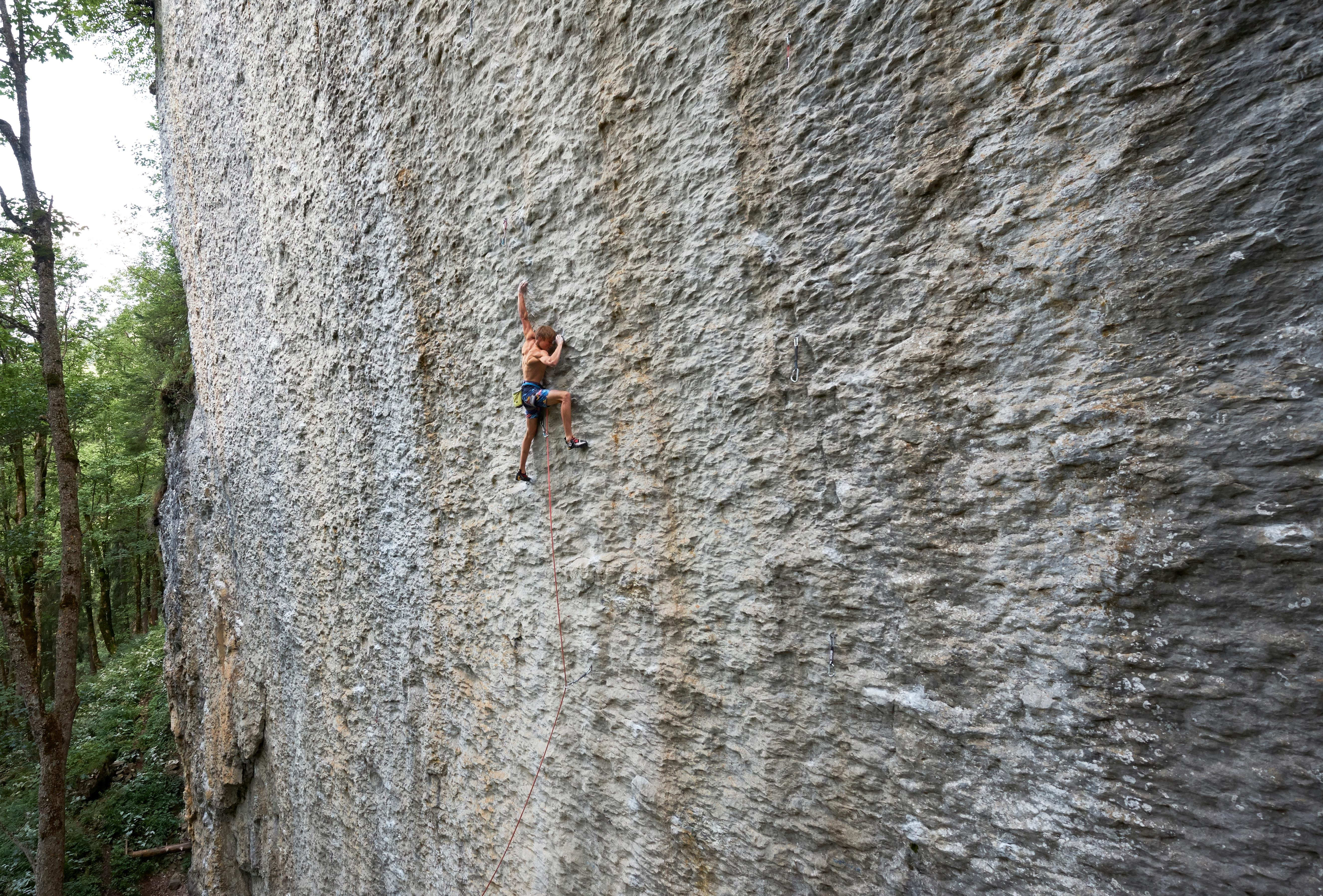 Alex Megos climbs Speed Integrale at Voralpsee in Switzerland