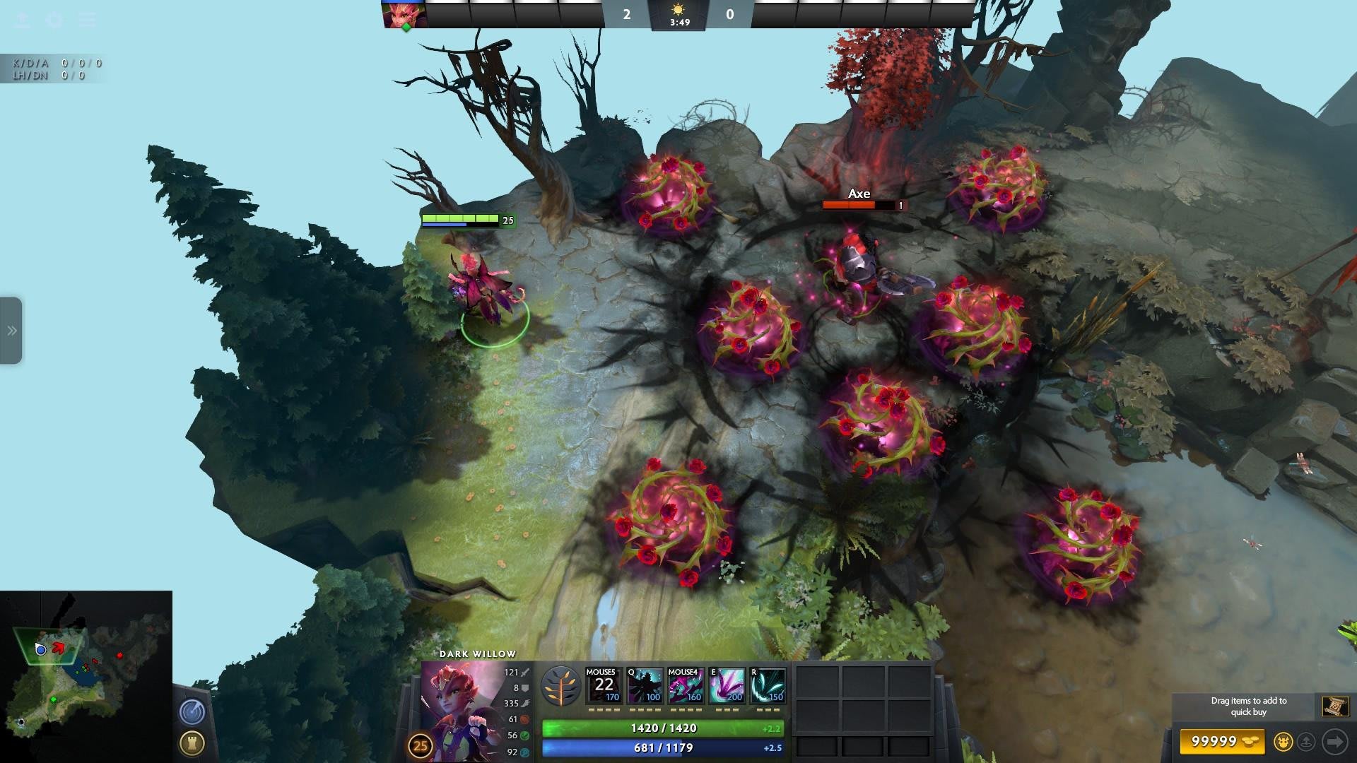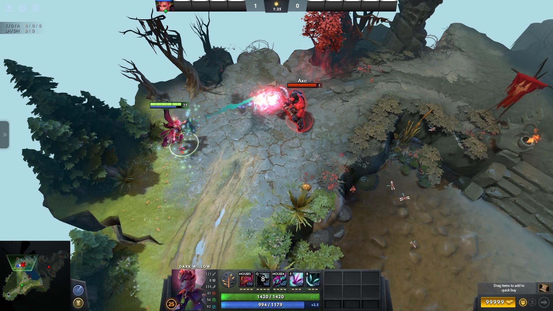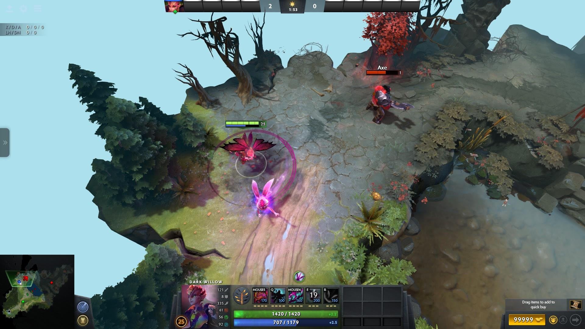 A good match up in the core role would be against a melee hero. Facing up against any melee hero in the mid lane should be fairly easy and you will almost certainly be able to out last-hit them. Playing Dark Willow as a core is also a good idea if you know the game will likely go late, as the level-25 attack speed talent will be enough to win you the game single handedly with one or two damage items.