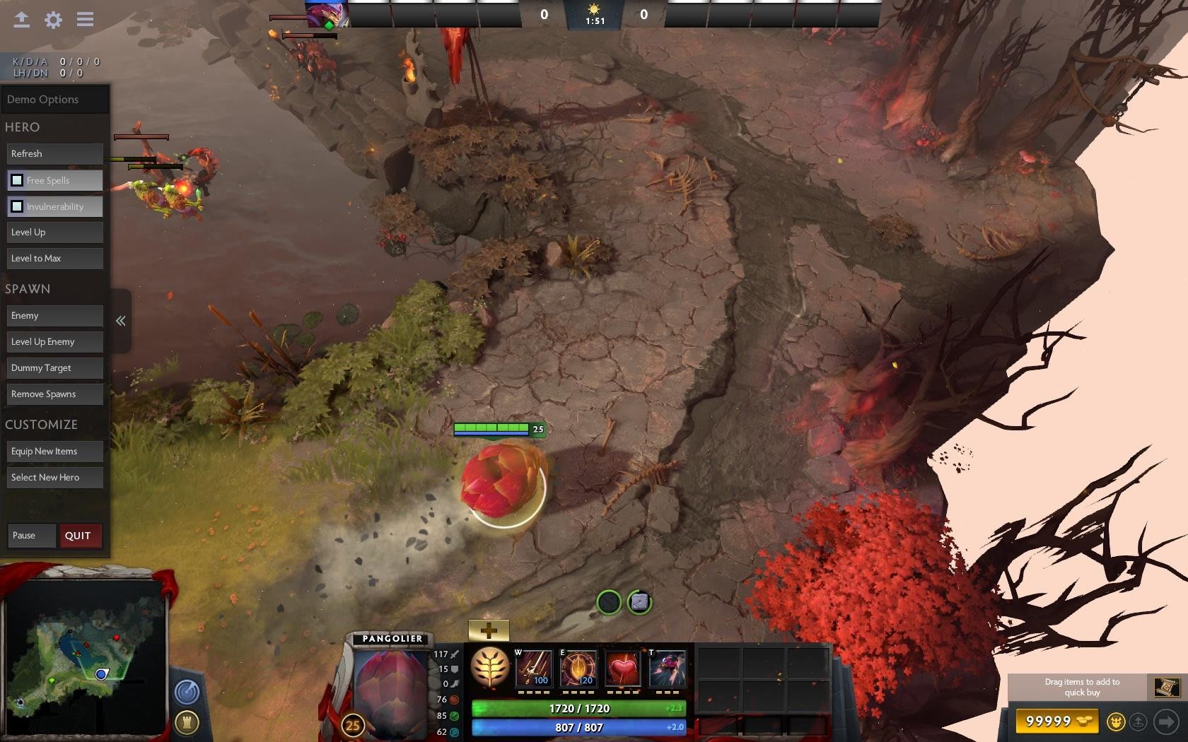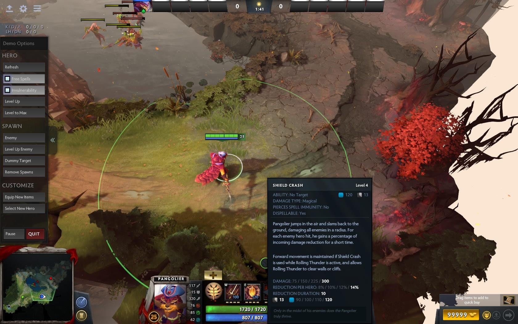 Rolling Thunder sees Pangolier emulating Earth Spirit: he curls up into a ball and rolls wherever directed. You do still have a modicum of control during the ult, however Pangolier’s turning ability is equivalent to that of a double-decker bus at full speed. At max level, Rolling Thunder deals 300 damage on every impact and stuns for 1.5 seconds. While in ult form you’re able to roll through trees, but hitting a wall bounces Pangolier back, allowing for subsequent hits and possible stun locking.