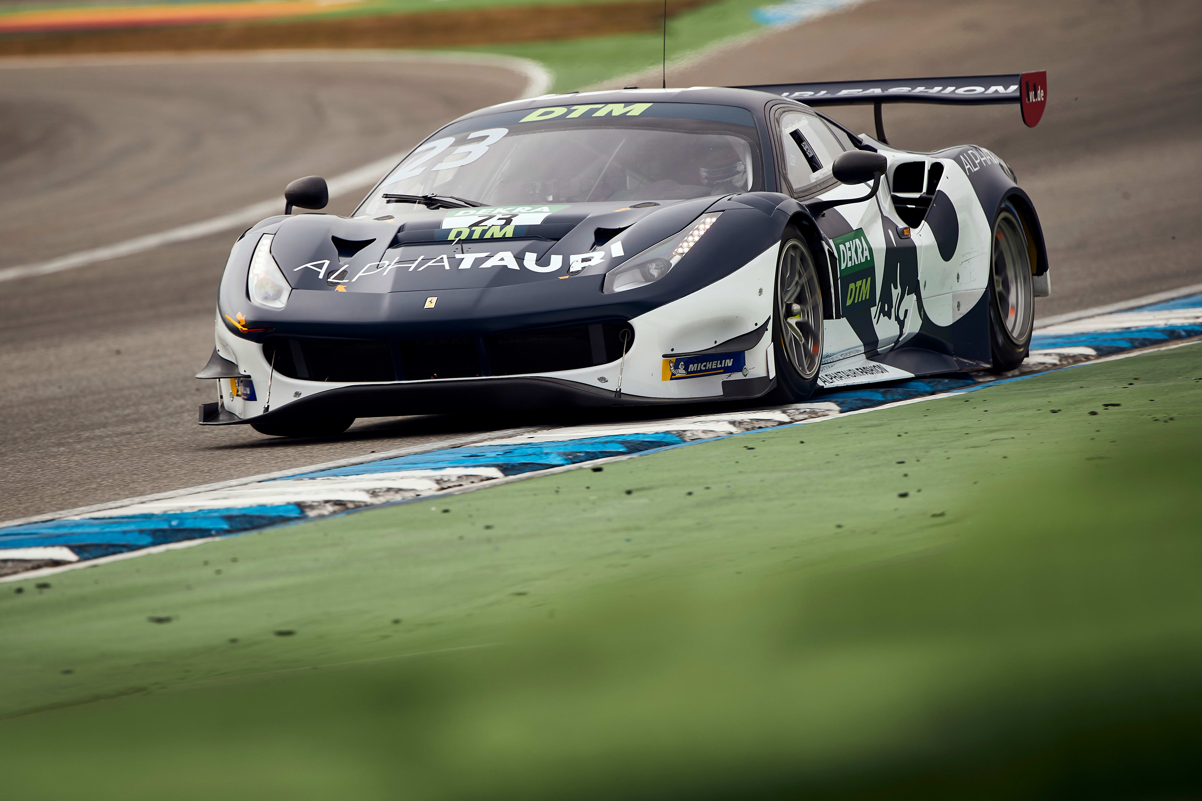 Alex Albon in the stunning Ferrari 488 GT3 in AlphaTauri colours