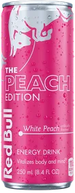 The Red Bull Peach Edition with the taste of white peach and a touch of citrus peel and floral notes.