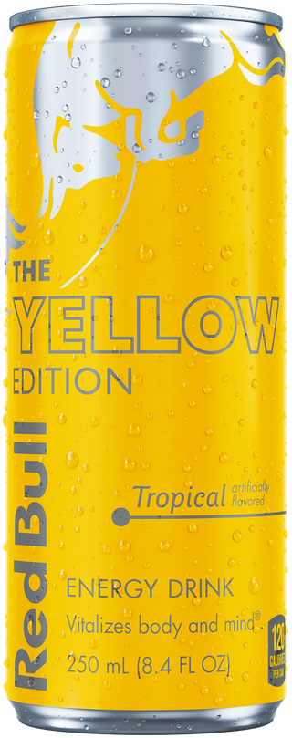 Each 8.4 fl oz can of Red Bull Yellow Edition contains 80 mg of caffeine. Caffeine helps to improve concentration and increase alertness.