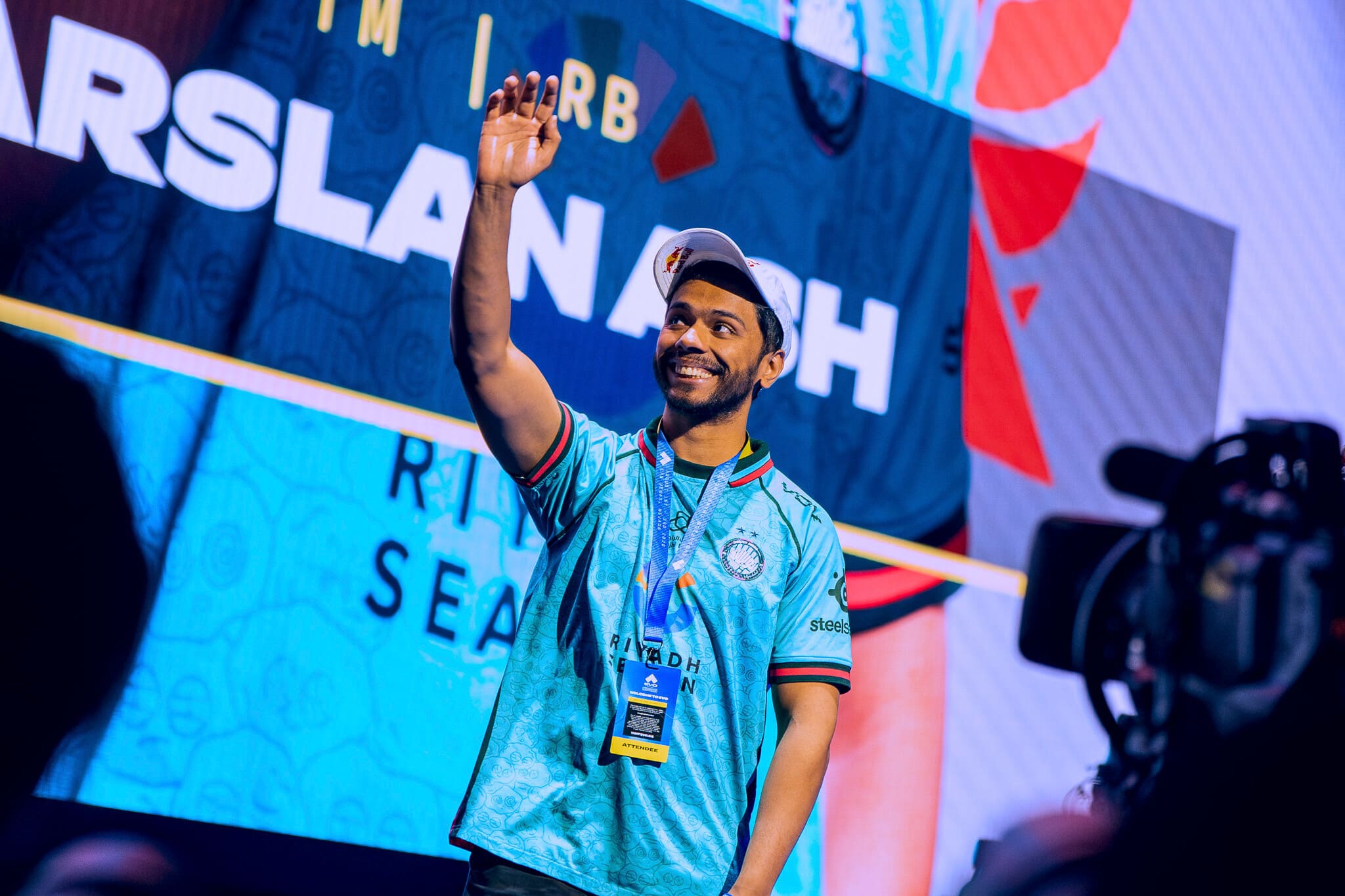 Arslan Ash greets the main stage crowd at EVO Championship Series in Las Vegas, Nevada, USA on August 3, 2025