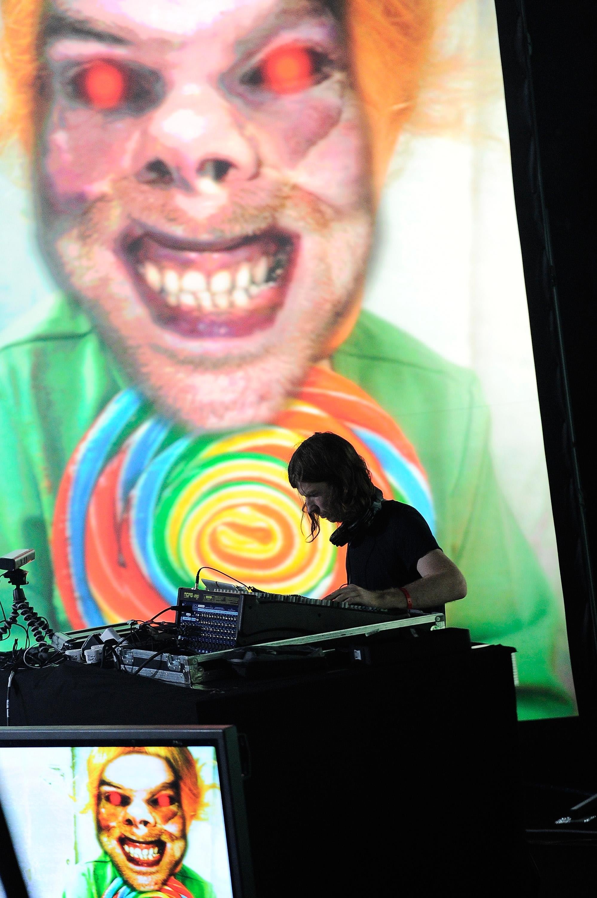 This is very much the case with Aphex Twin’s current sets. If you’re standing near the front, you might find that yourself and Aphex Twin merge; that your likeness appears on the big screens, mangled, incorporated, Aphex-ed. During the show, the grinning Aphex Face will transpose itself on to everything from celebrities to politicians. The venue and everyone within it will submit to this mischievous spirit. So beware: if you go and see him, you’re being incorporated too.