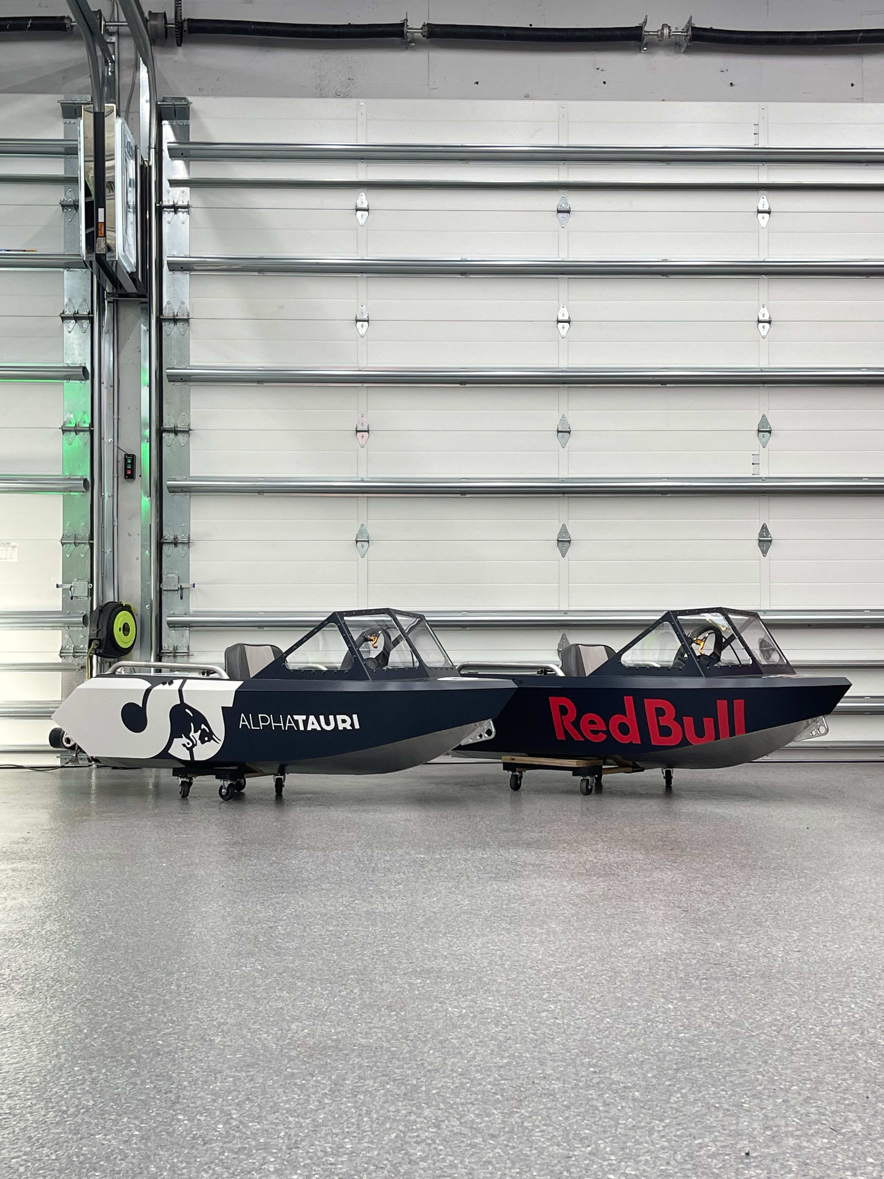 To give the boats the proper flair for a race weekend in Miami, Metrowrapz took the pair of mini jet boats and wrapped them in stunning Oracle Red Bull Racing and Scuderia Alpha Tauri liveries. Check out a full behind-the-scenes look at the wrapping process, in its full ASMR-style glory, and dive into the craft and artistry that went into these custom wraps.