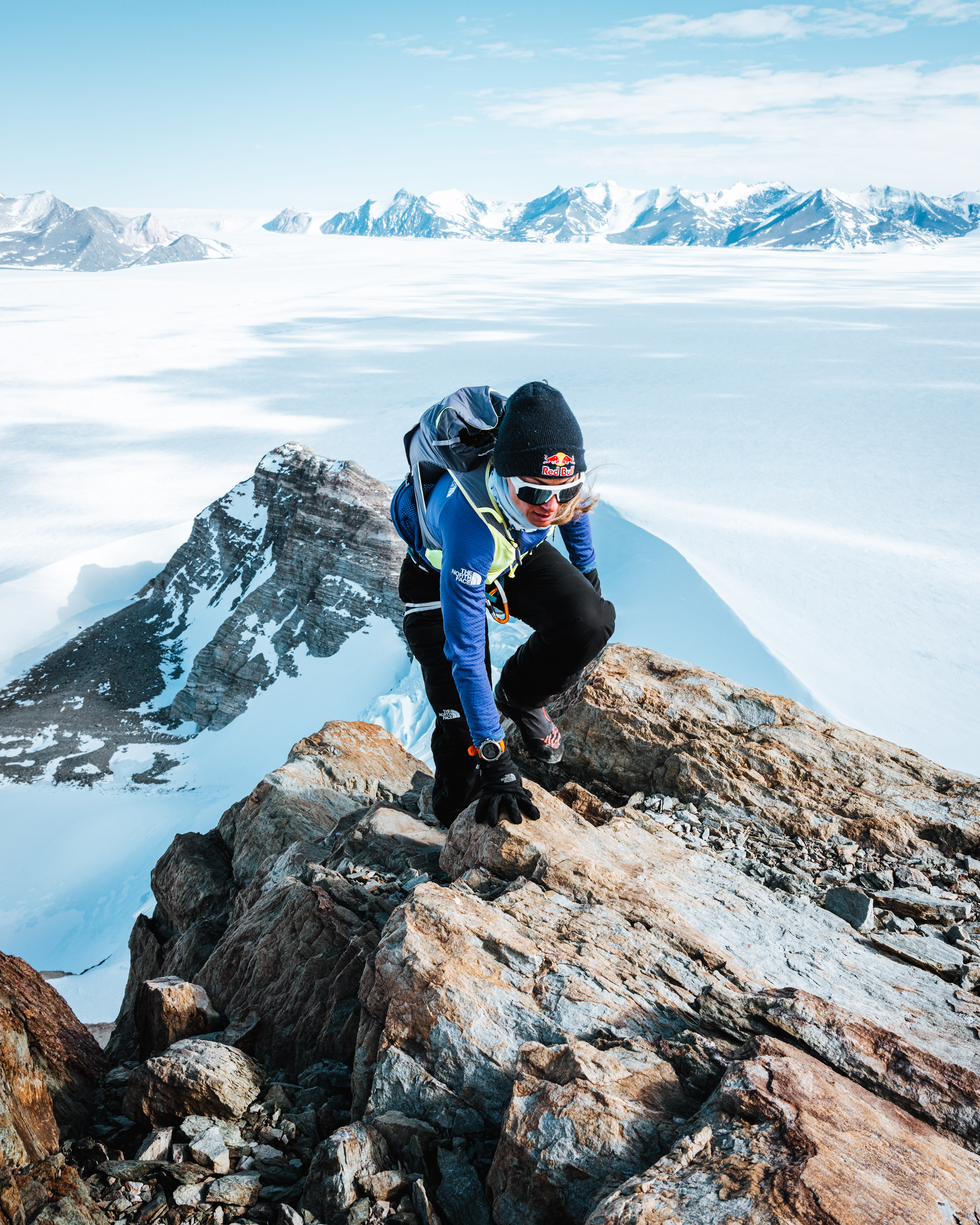 "A plant could not survive here. Everything here is different, it is white, the clouds are closer to us, sun 24 hours and some blue ice around. It feels like peace everywhere, it is super-remote. I love being in such contrasting terrains. They help me to improve my skills.”