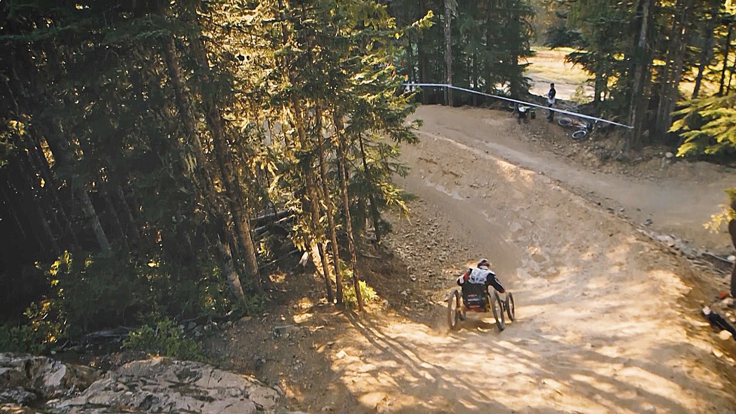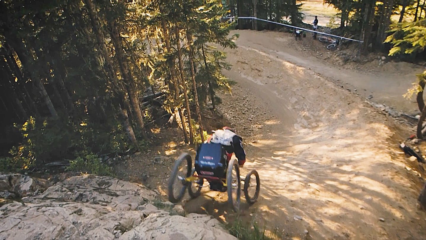 "I have a responsibility as a person in a wheelchair, with a 'disability,'" says Crankworx Air Downhill race entrant and four-wheel category athlete Stacy Kohut, "to go out and lay down the hardest run I can."