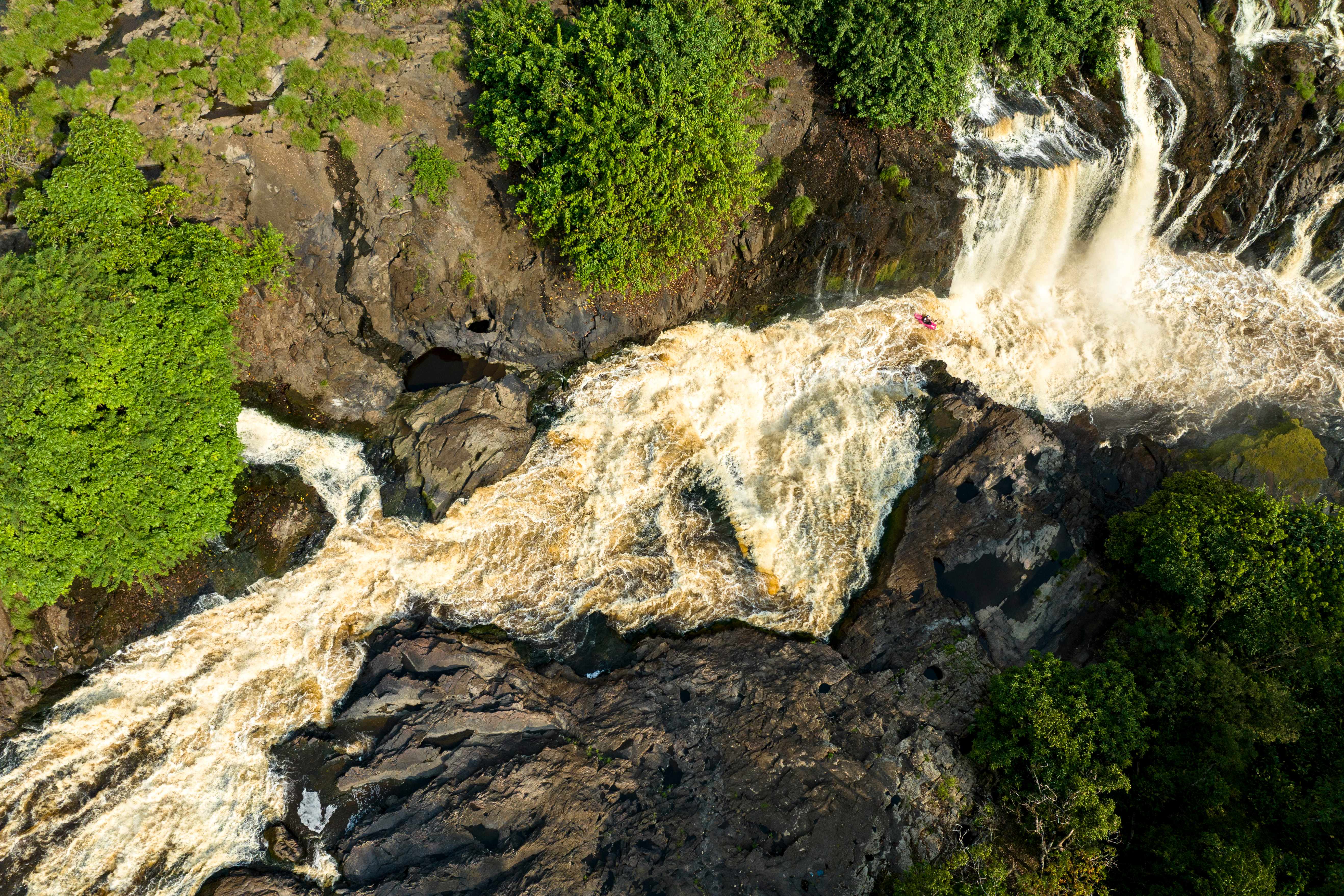 Kouata Mango can be roughly translated into “touch the sky” – and the circumstances are almost heavenly. Here, too, there are several possibilities, two of which seem particularly promising for kayakers upon closer inspection, including a 20-meter-high waterfall and a section that is so fantastic that the four of them quickly find a suitable name for it - Eldorado.