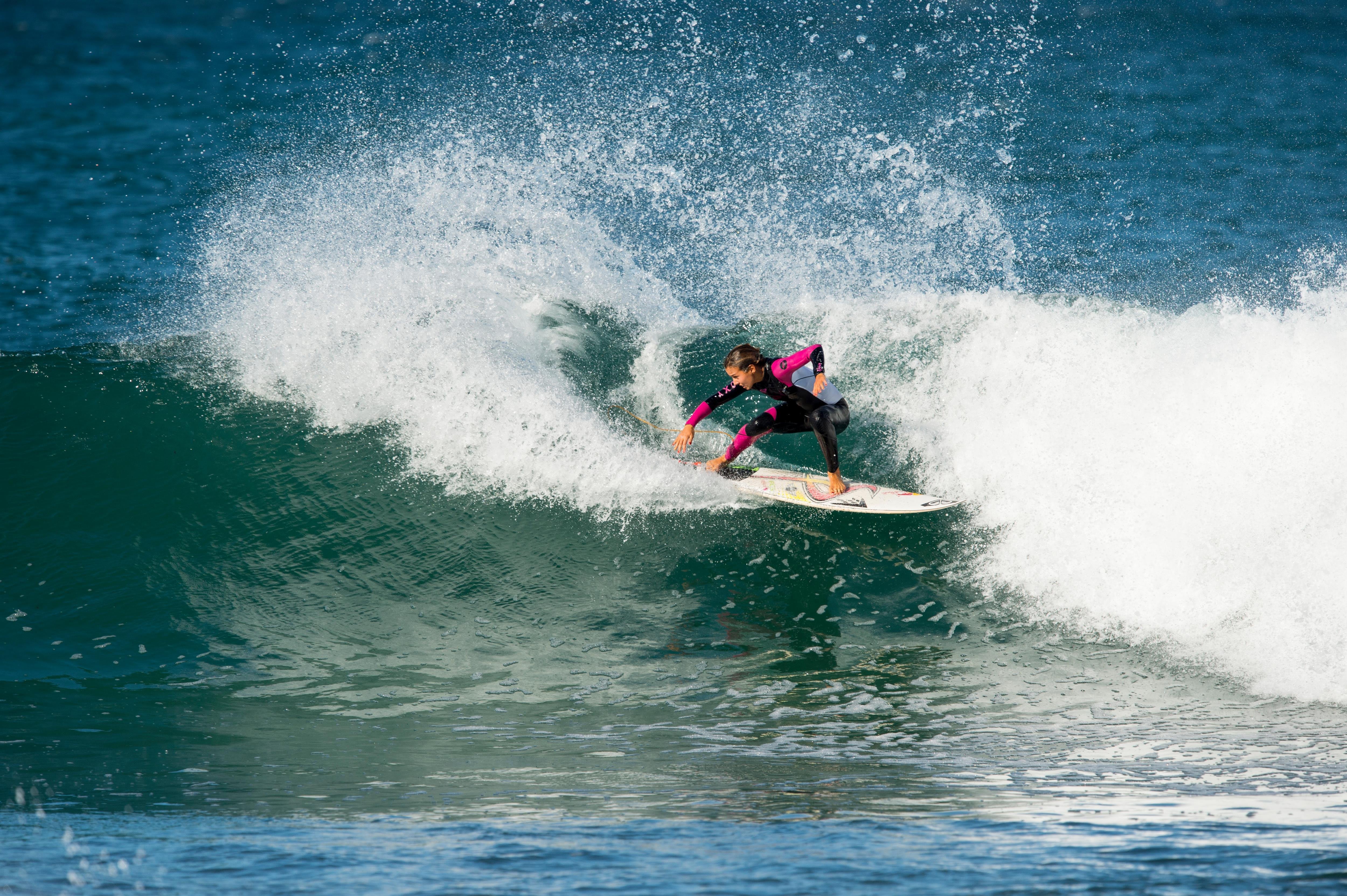 Sally Fitzgibbons surfing in Lima