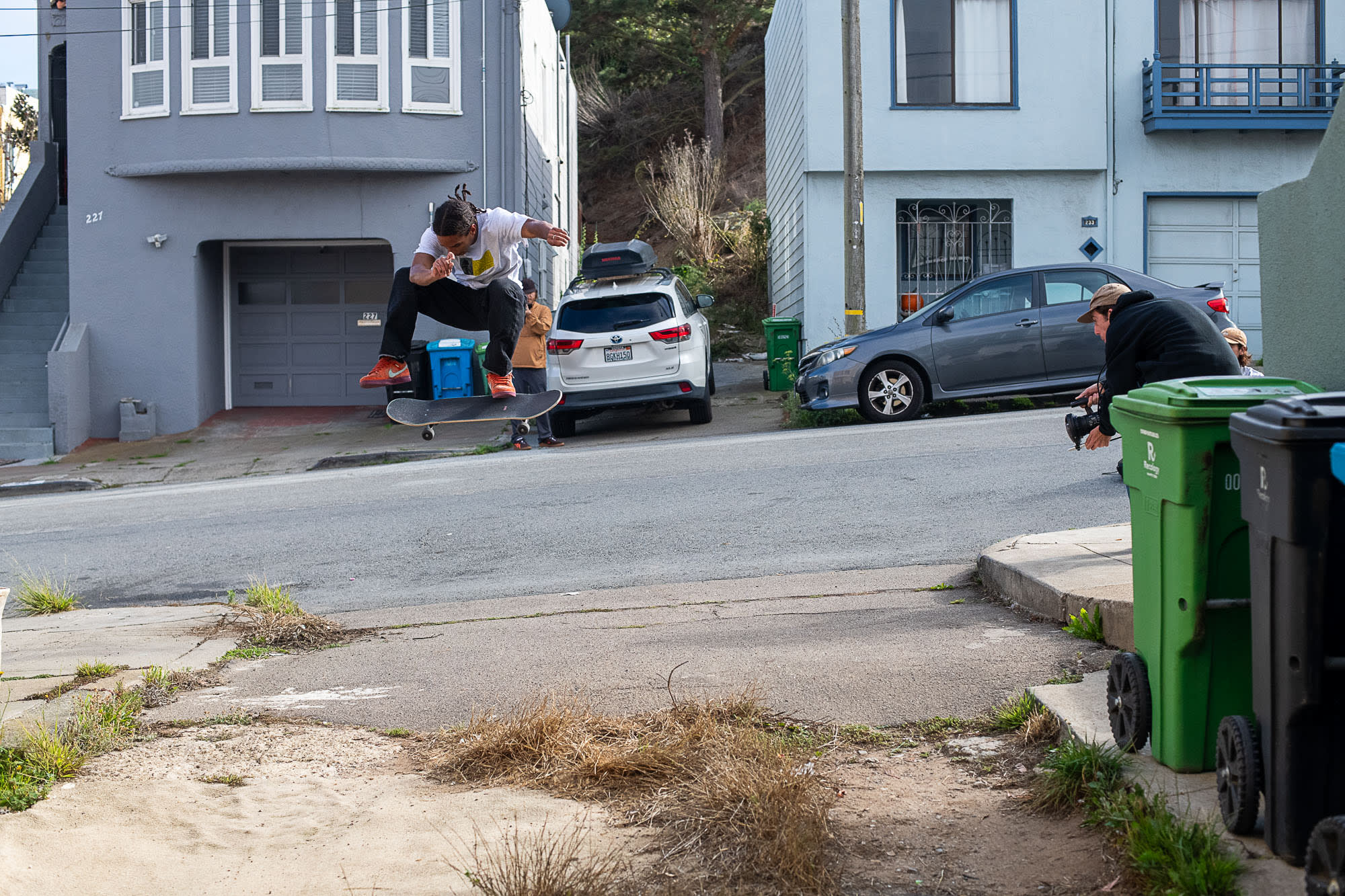 Otto is from San Diego and moved to San Francisco in 2015, drawn to The City by the GX1000 videos, Static IV, and projects by Zach Chamberlain. Today, he works for Thrasher and GX1000 and is in the streets every day. The name of the game, for his crew, is patience and persistence. “In San Francisco, the process is definitely harder. The spots that we get clips on, it usually takes us a bunch of times going back. But I feel like the size of The City makes it perfect for doing that. You search around and keep tabs on all these spots, waiting for a car to move or something.”