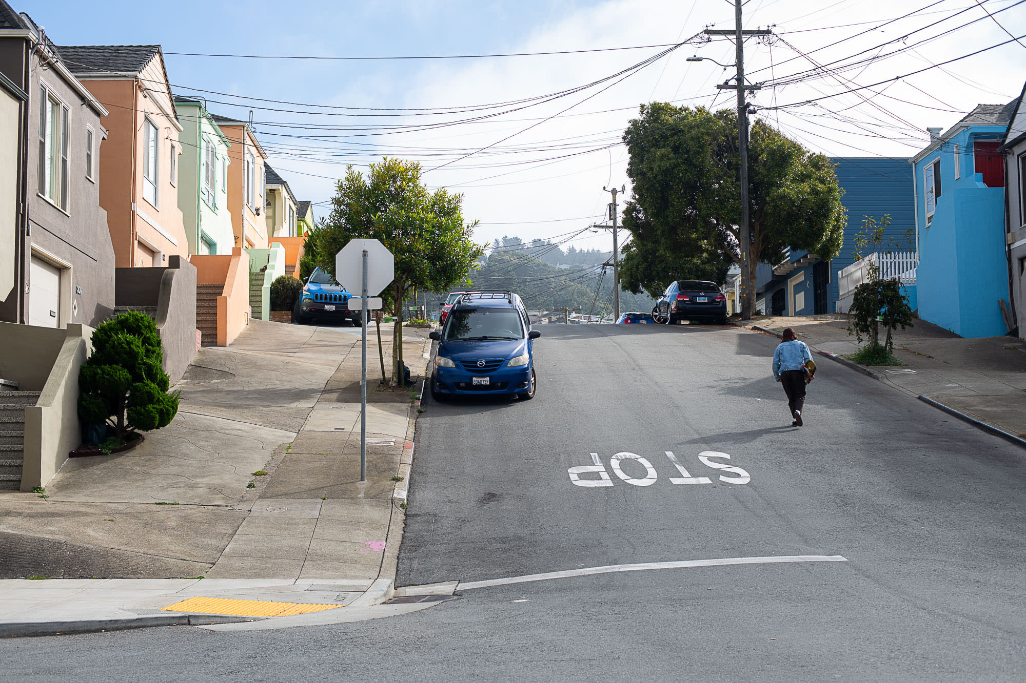 The threat of a car rolling into an intersection at the wrong time makes filming on the big hills all the more nerve-racking. Otto’s approach to filming his friends on hills includes bringing a group to allow for spotters at every intersection. “Sometimes there's not enough people spotting and then some pedestrians will help us out. We definitely try to make it as safe as possible.” For Otto and his crew, it helps having multiple filmers on the session. “There’s definitely been a couple of times where I had to decide, do I spot right now or do I film it? I'll be nervous that I have to jump out and stop a car while I’m filming. So it's nice when there's another cameraman there, so I'm not the only one.”