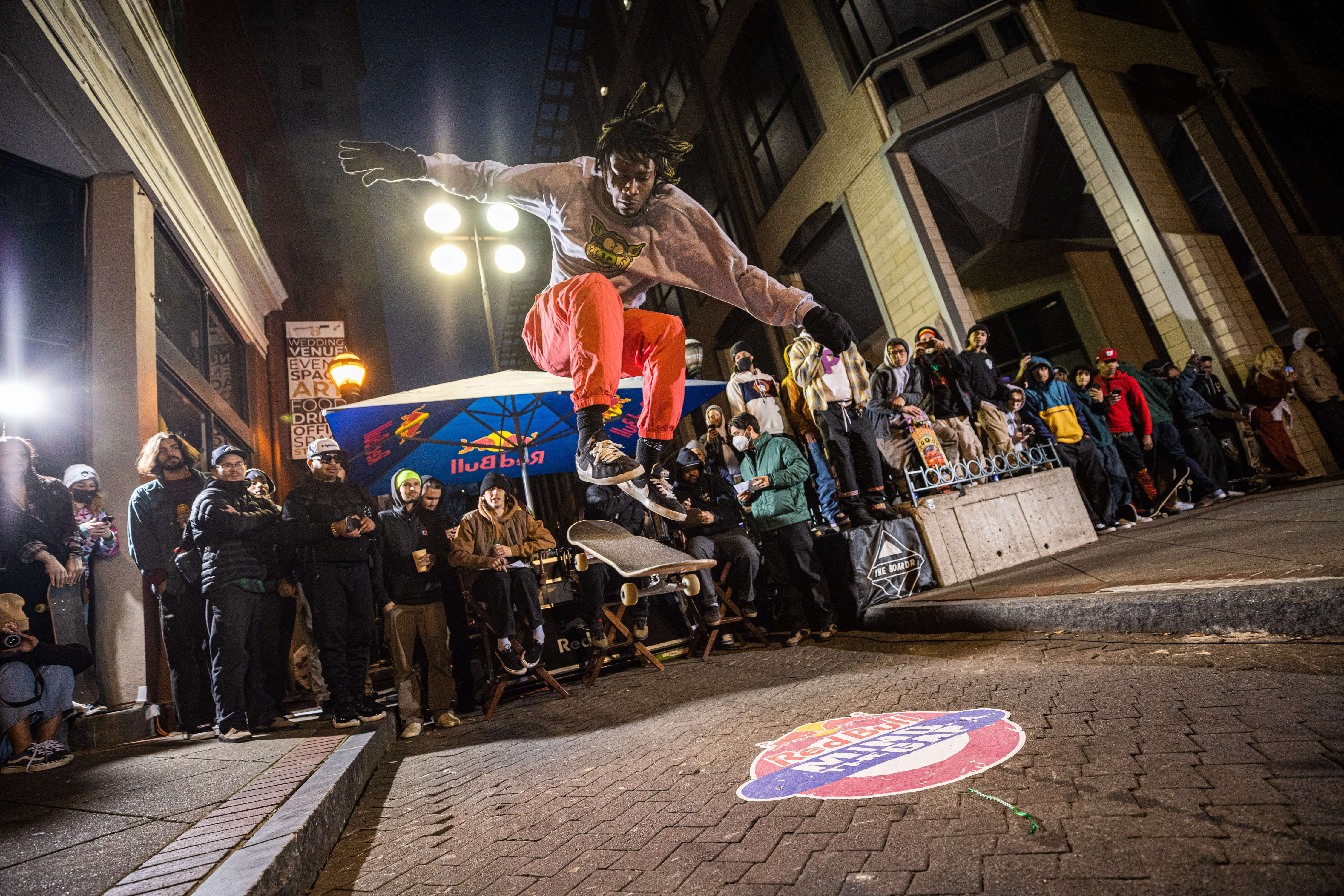 A participant pop shove it at Red Bull Mind The Gap in Atlanta in 2022